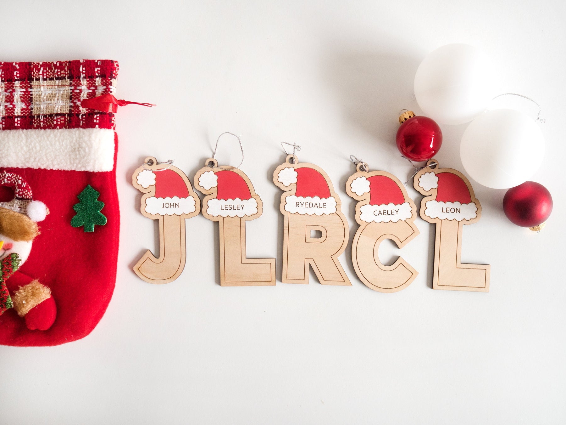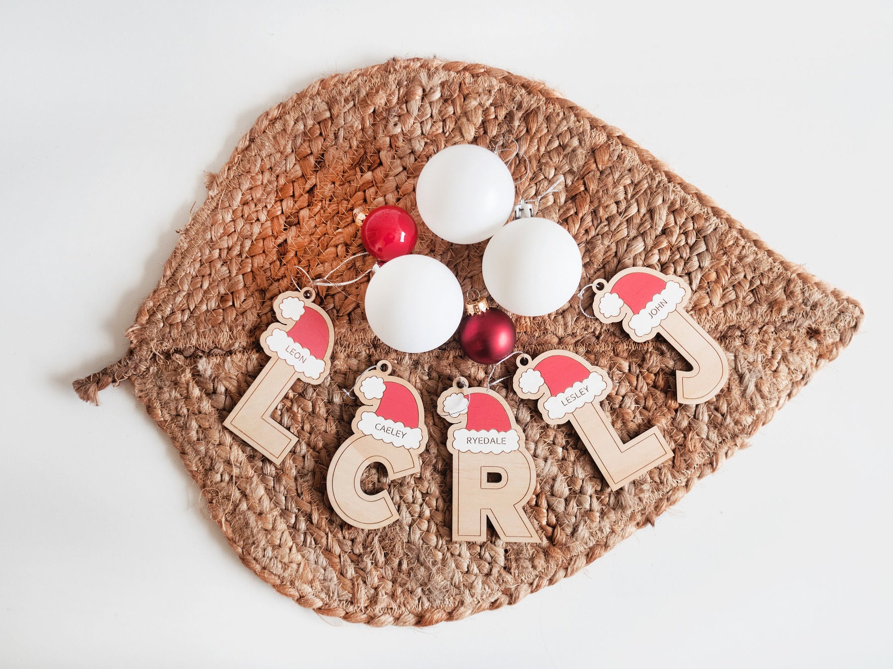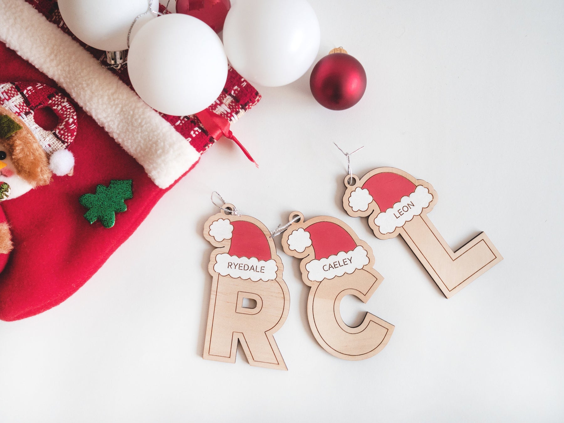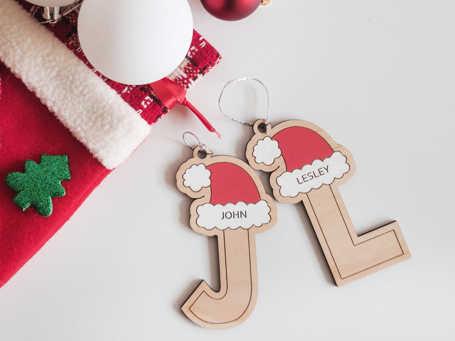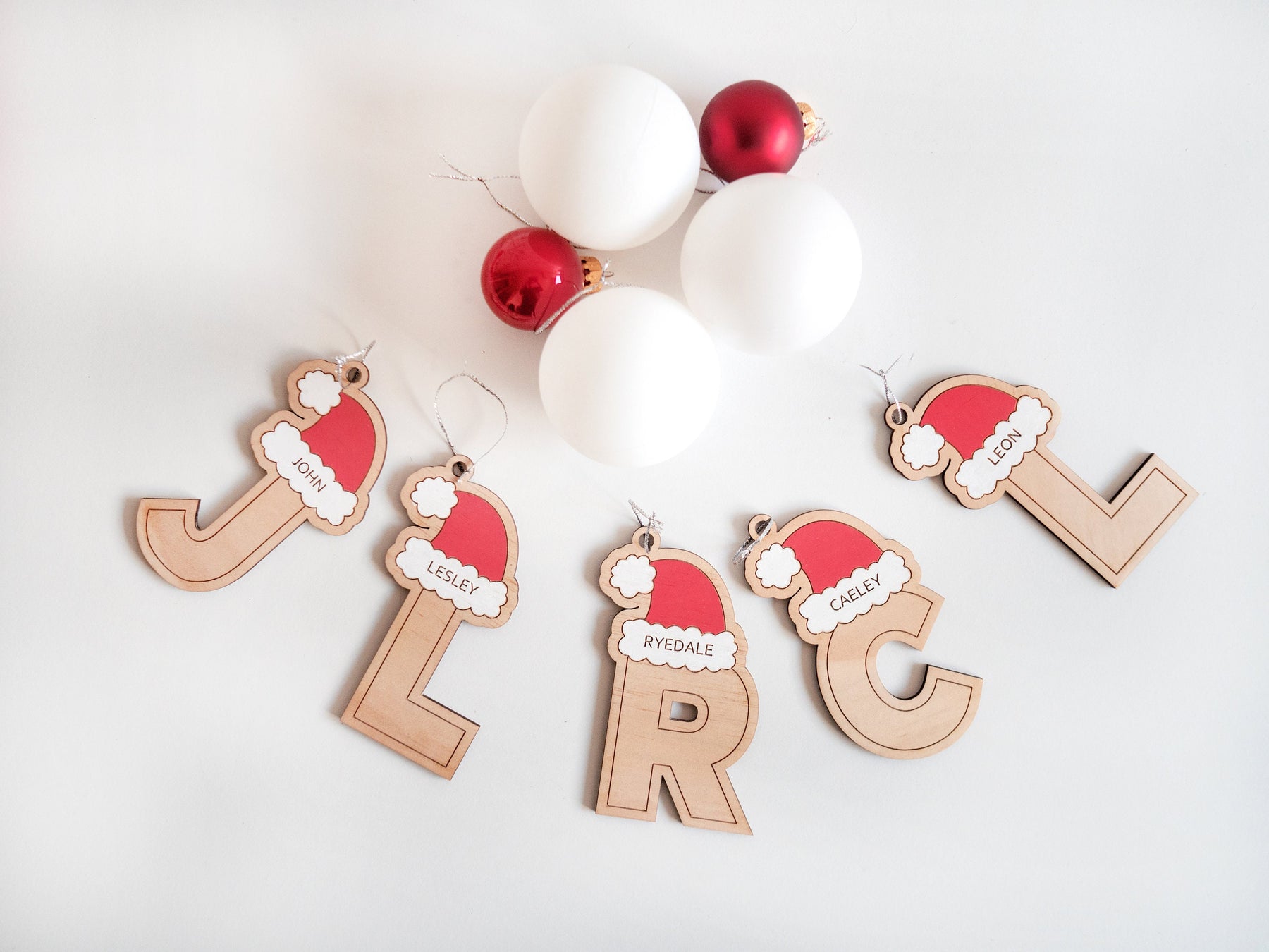 These personalised Santa Hat initial Christmas ornaments (letter ornaments) are an ideal decoration for your Christmas tree! Crafted from wood, each ornament features a unique initial or letter design.
