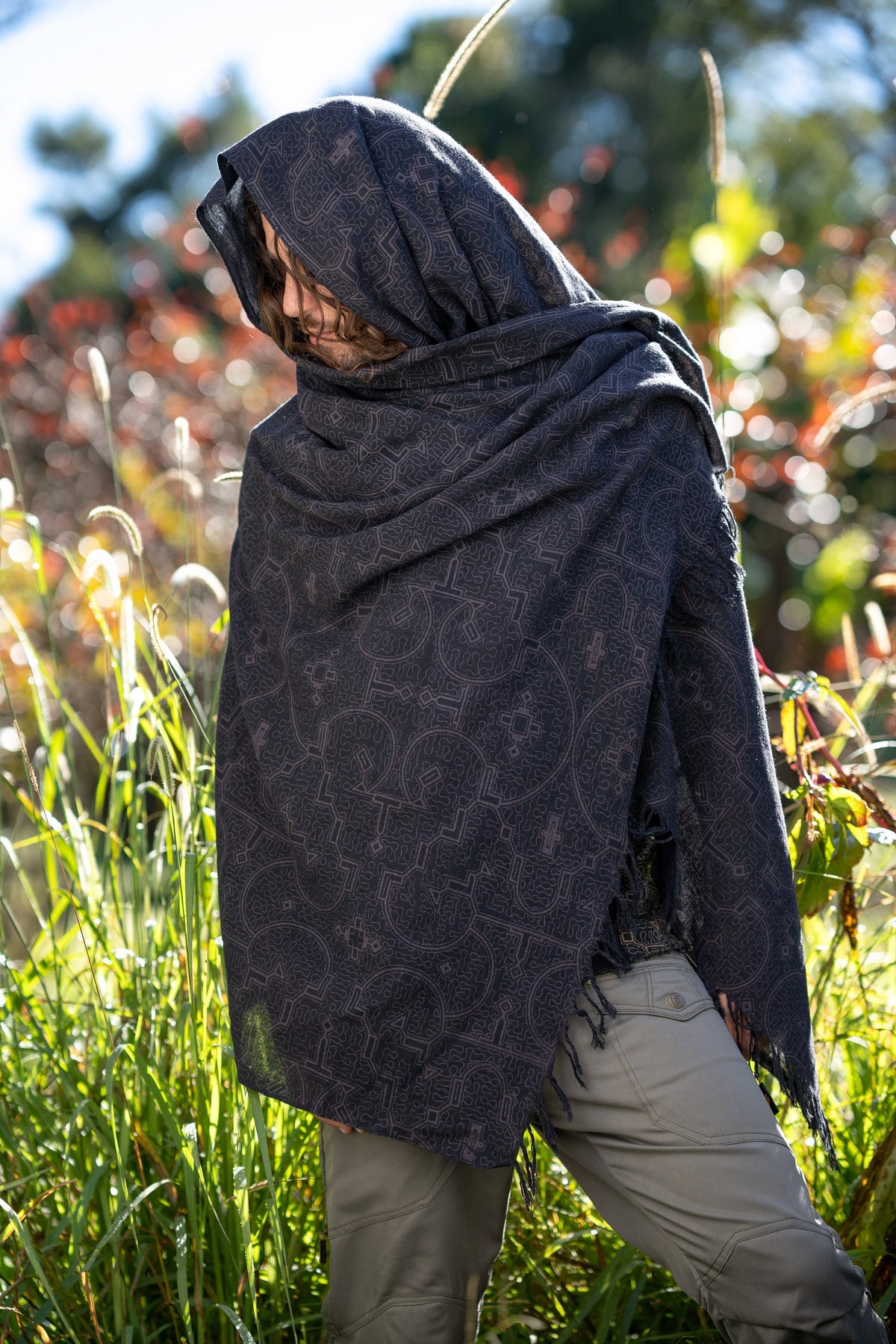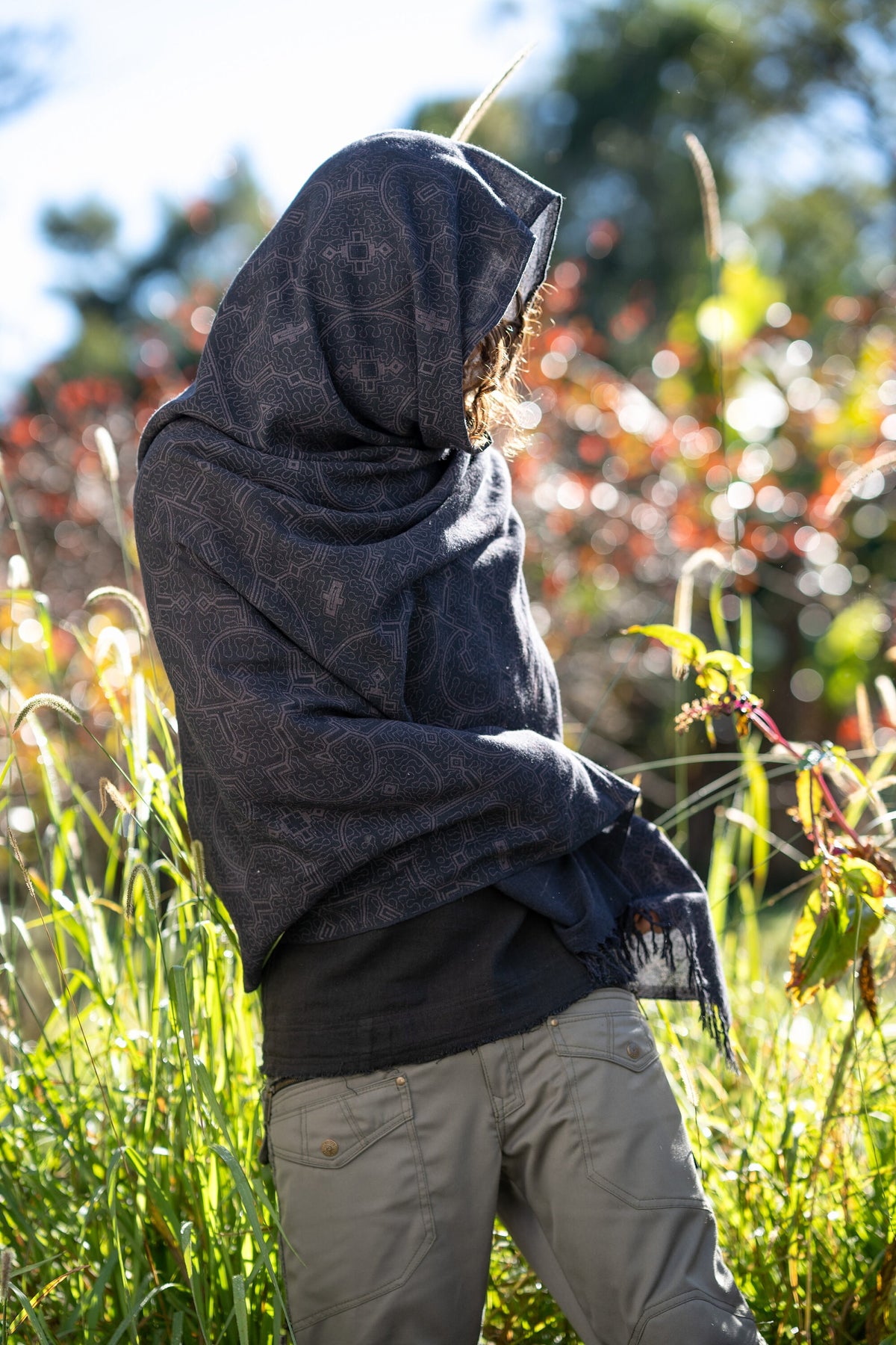 Large Scarf / Shawl featuring a Natural Cotton Sacred Shipibo Design
