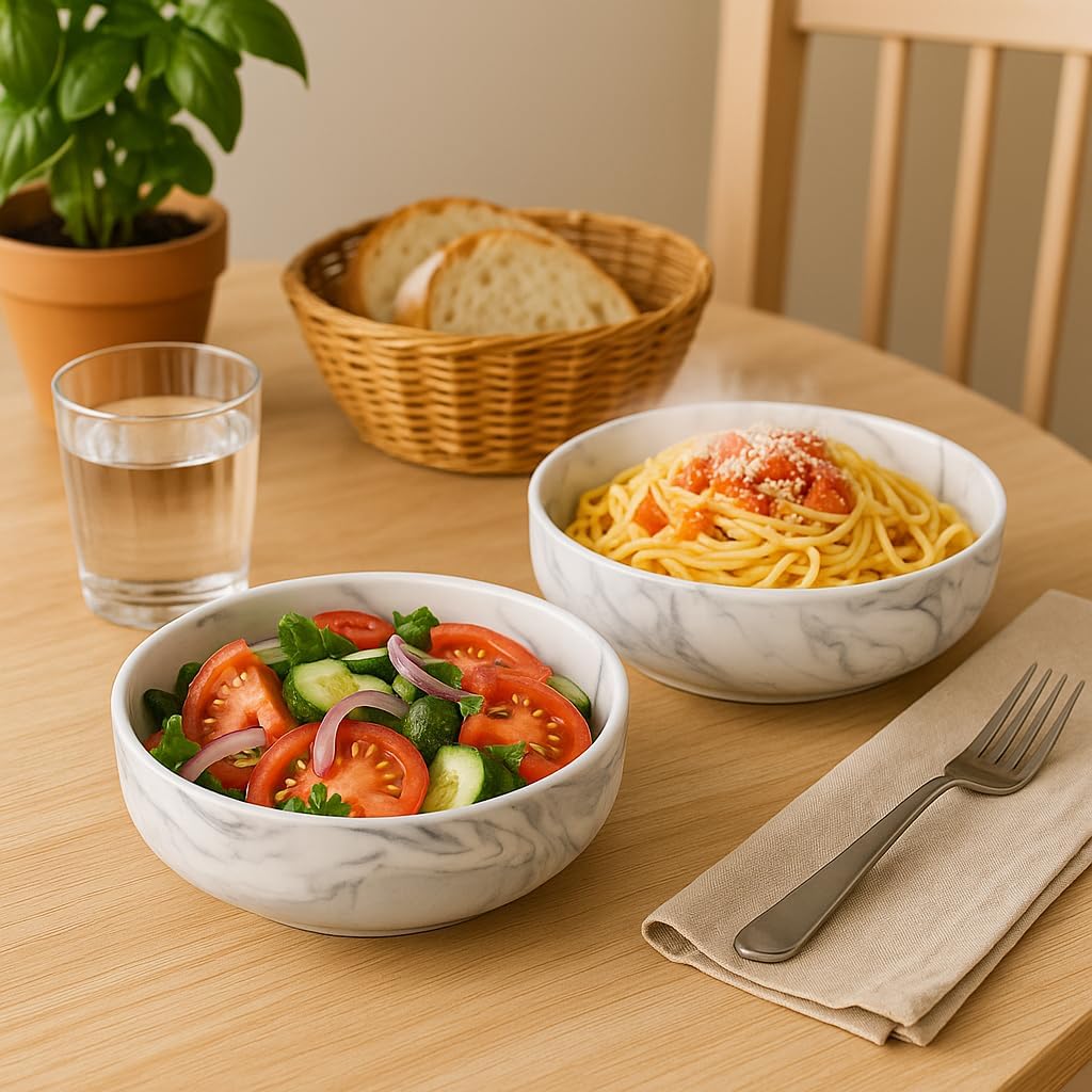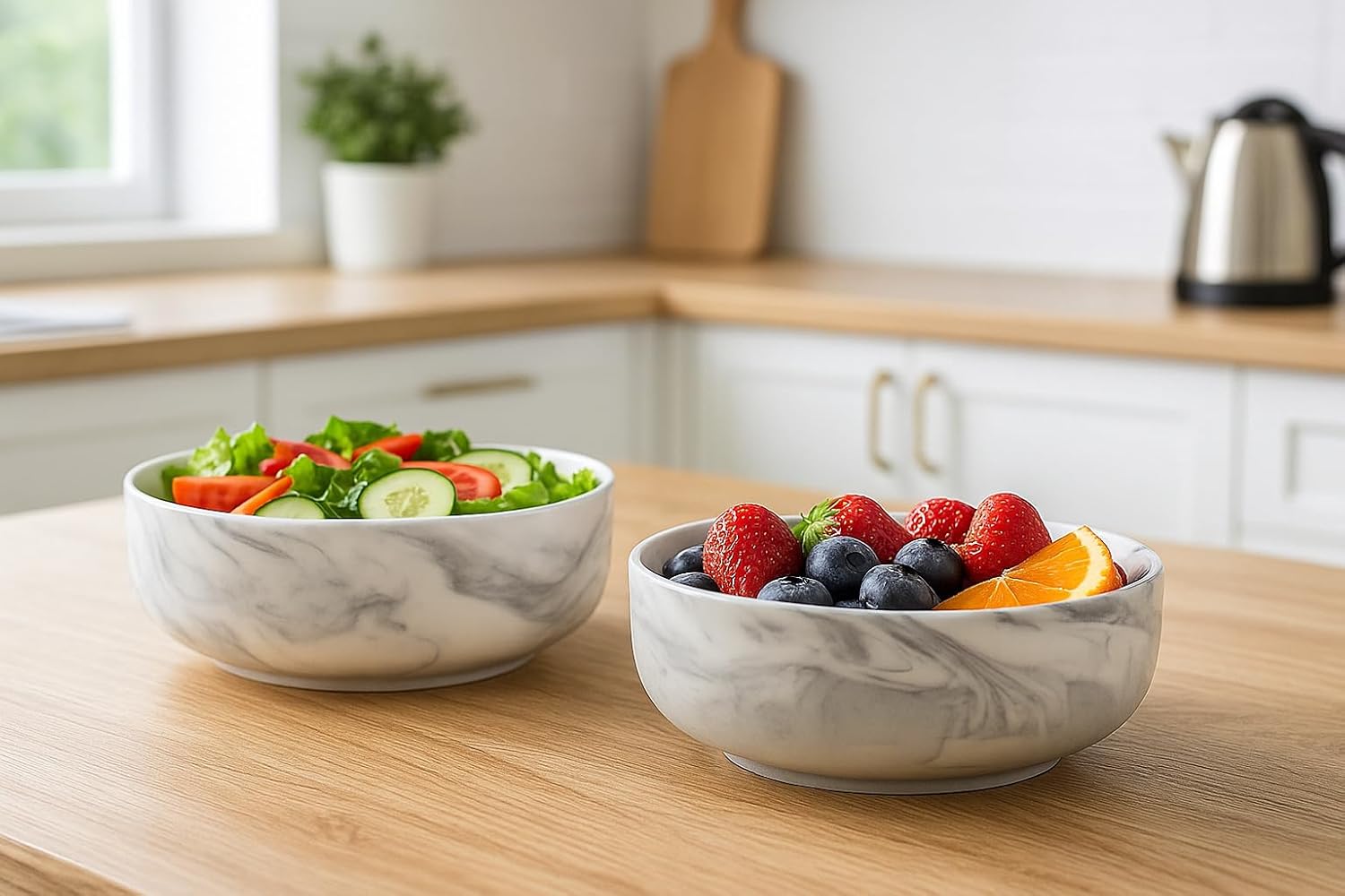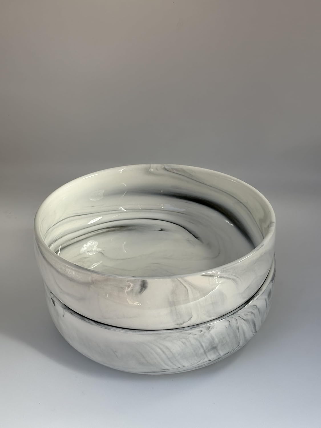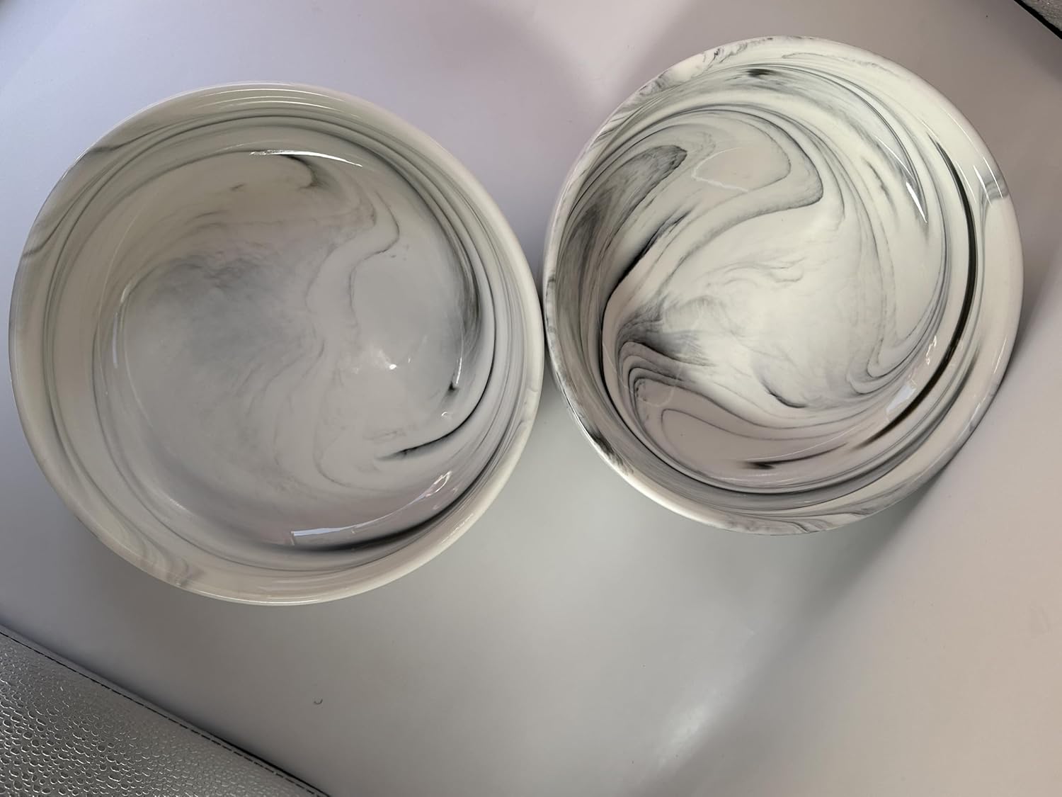 SKYLUXE - Porcelain Marble Grey Bowls Set – Elegant Marble Design for Soup, Salad, Ramen, and Fruit – 2-Piece Durable and Dishwasher Safe