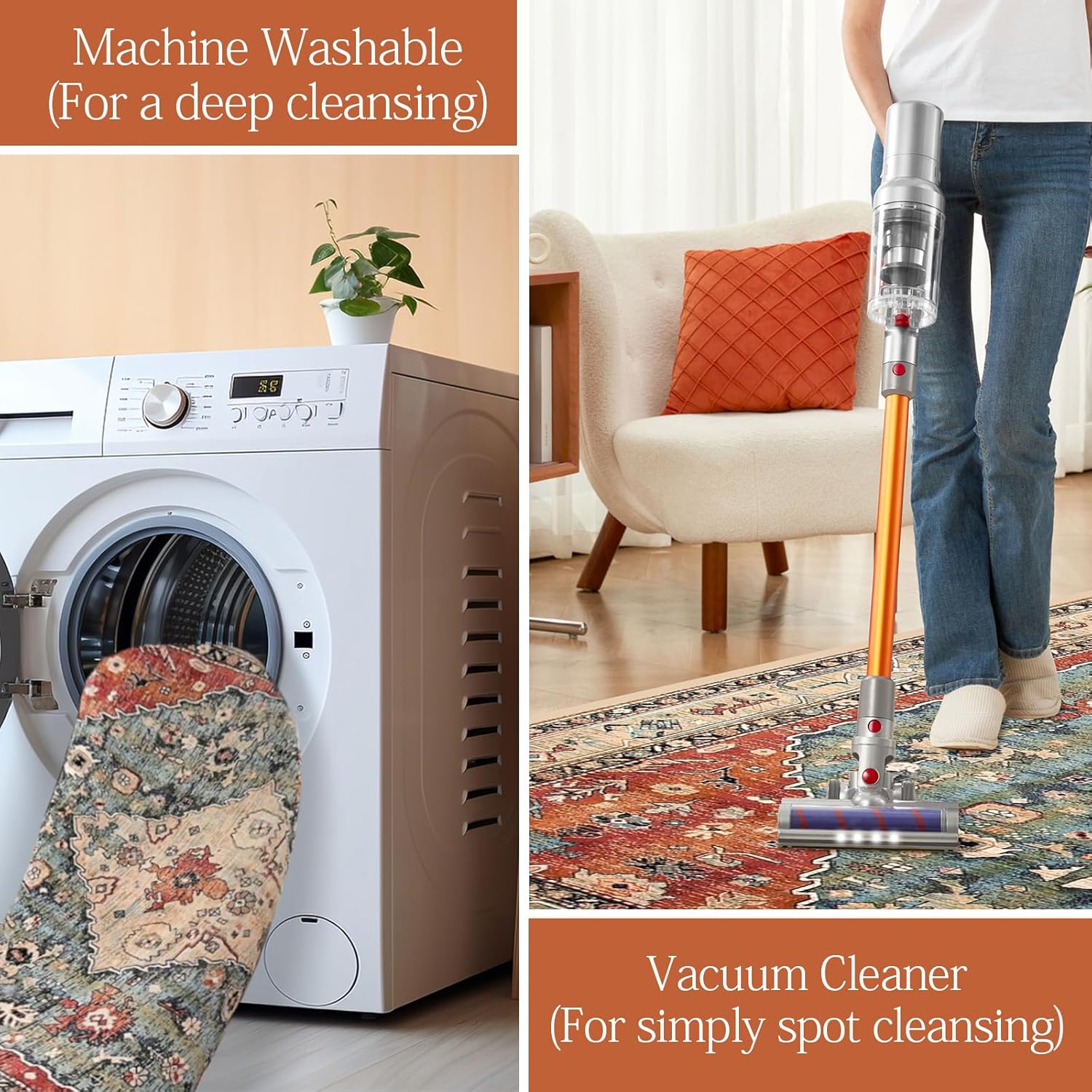 [Easy to Clean] - Spot cleaning and professional rug cleaning are recommended. For daily cleaning, use a vacuum cleaner, robot cleaner, or broom to prevent grit from breaking down the fibers. Machine Washable is available.