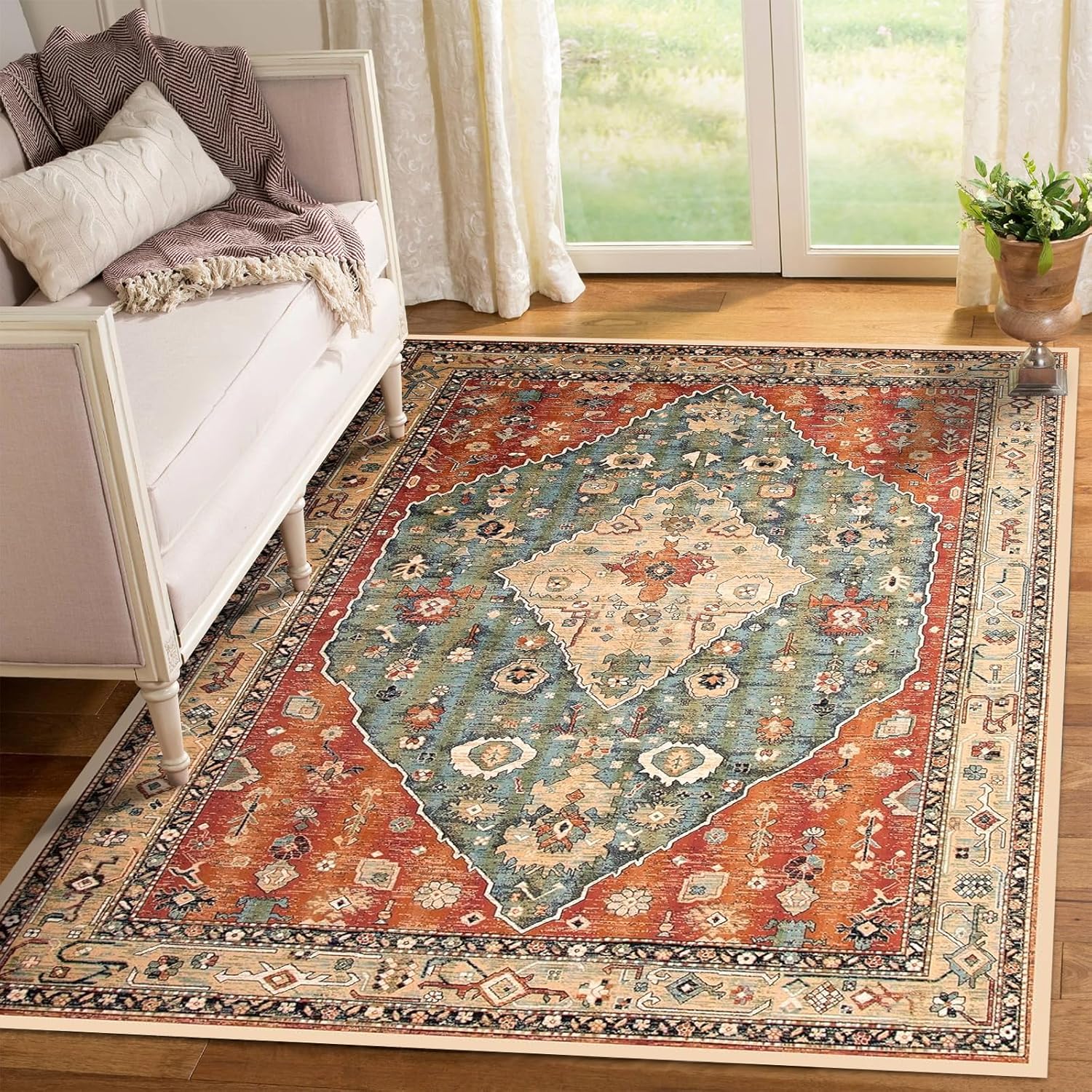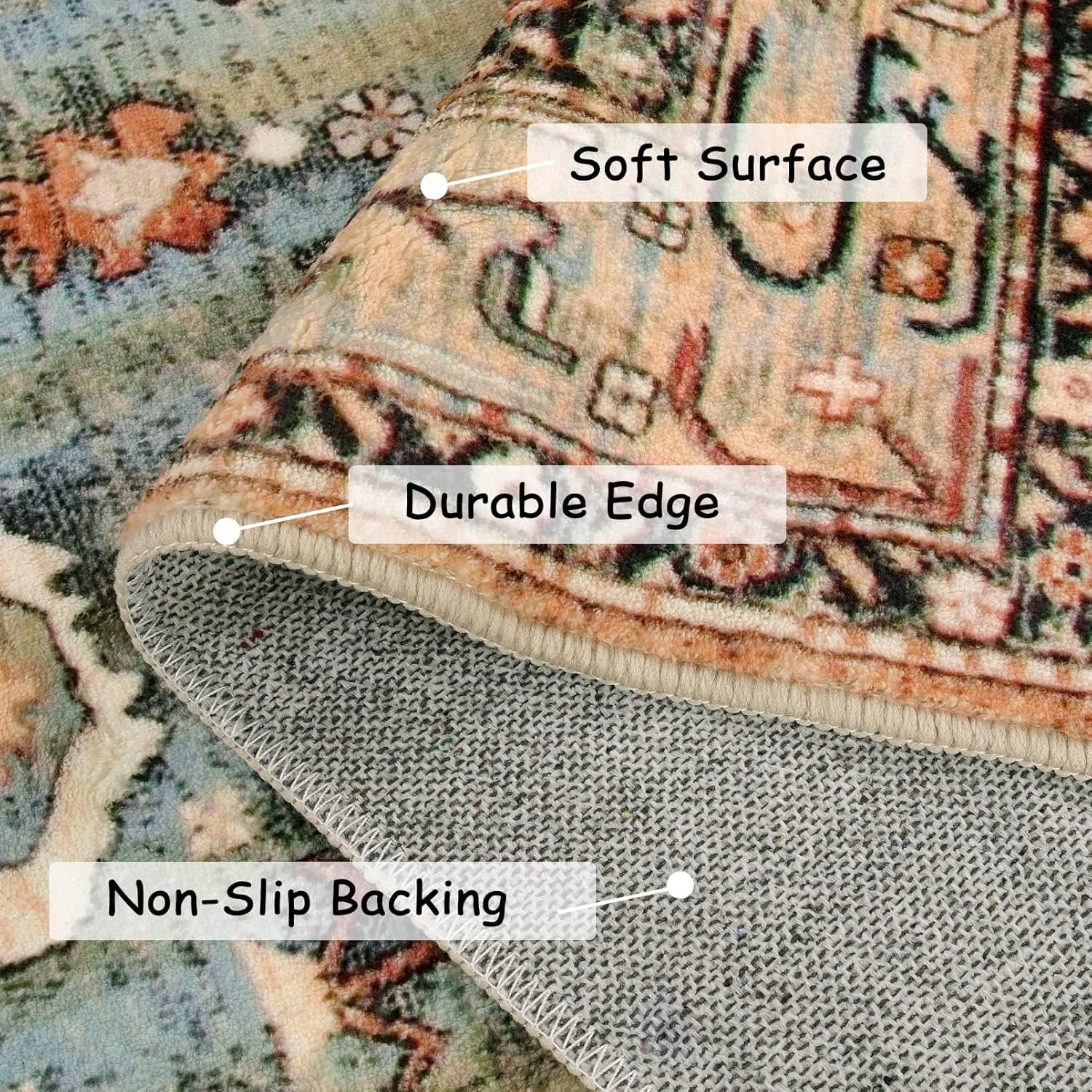 [Fluffy & Soft Rug] - This persian rug has a pile surface and reinforced overlock edges, non-shedding, while also providing a super soft feeling underfoot. (Please ensure that the bottom of the rug remains dry.)
