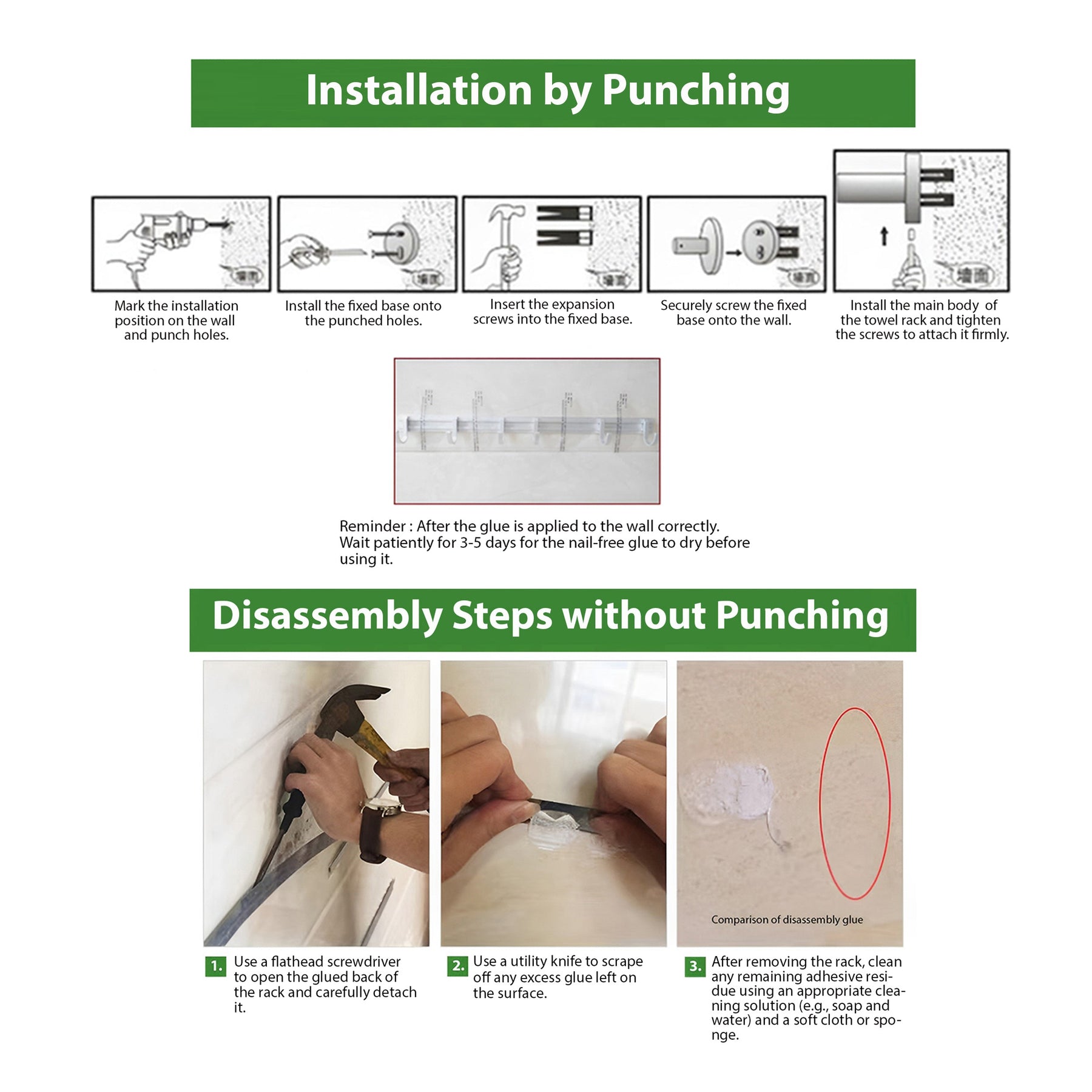Note: The walls must consist of sturdy, smooth materials like tiles, glass, or wood. Do not use weaker wall types like whitewashed walls, painted walls, or wallpaper, unless we install them by punching holes.