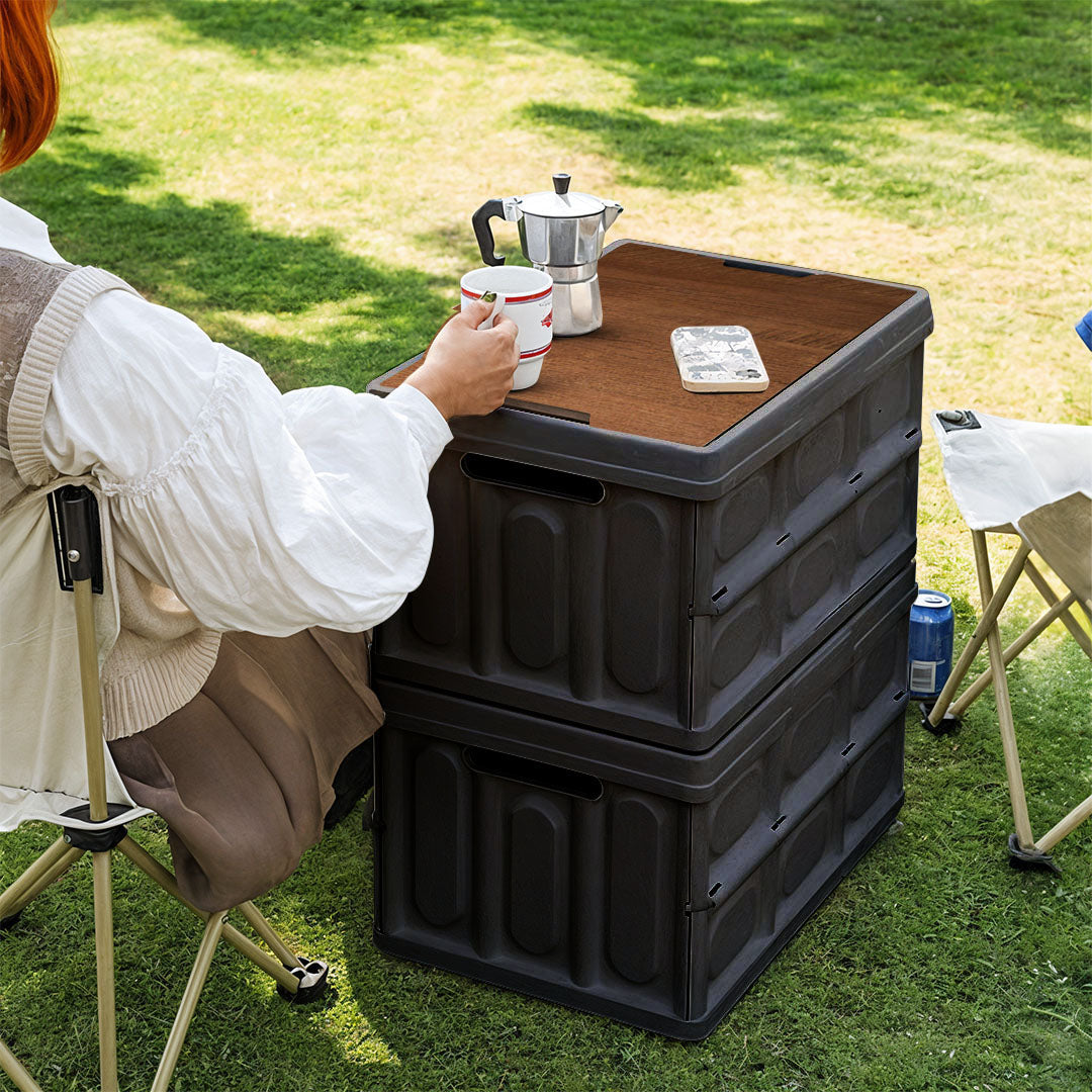 SOGA 2X 52.5x35.5cm 55L Black Car & Camping Foldable Storage Box Crate Stackable Container No Handle