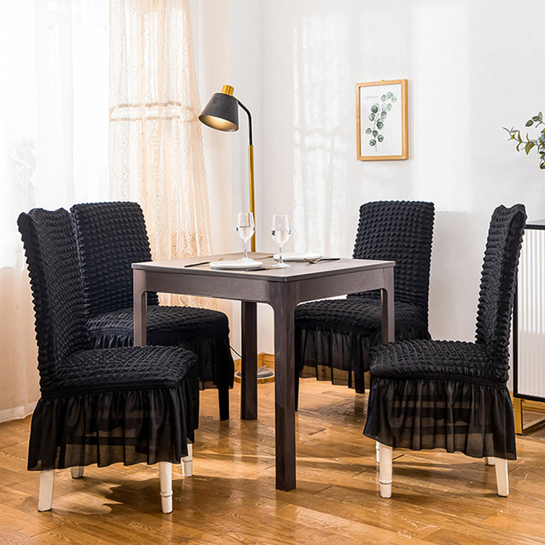 SOGA 2X Black Chair Cover Seat Protector with Ruffle Skirt Stretch Slipcover Wedding Party Home Decor