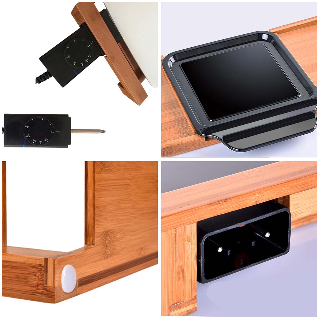 Bring on the heat - but don't burn your meat! The tray is equipped with an adjustable thermostat for safe controlled cooking