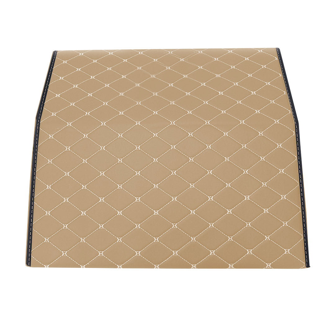 SOGA 2X Leather Car Boot Collapsible Foldable Trunk Cargo Organizer Portable Storage Box Beige/Gold Stitch Small