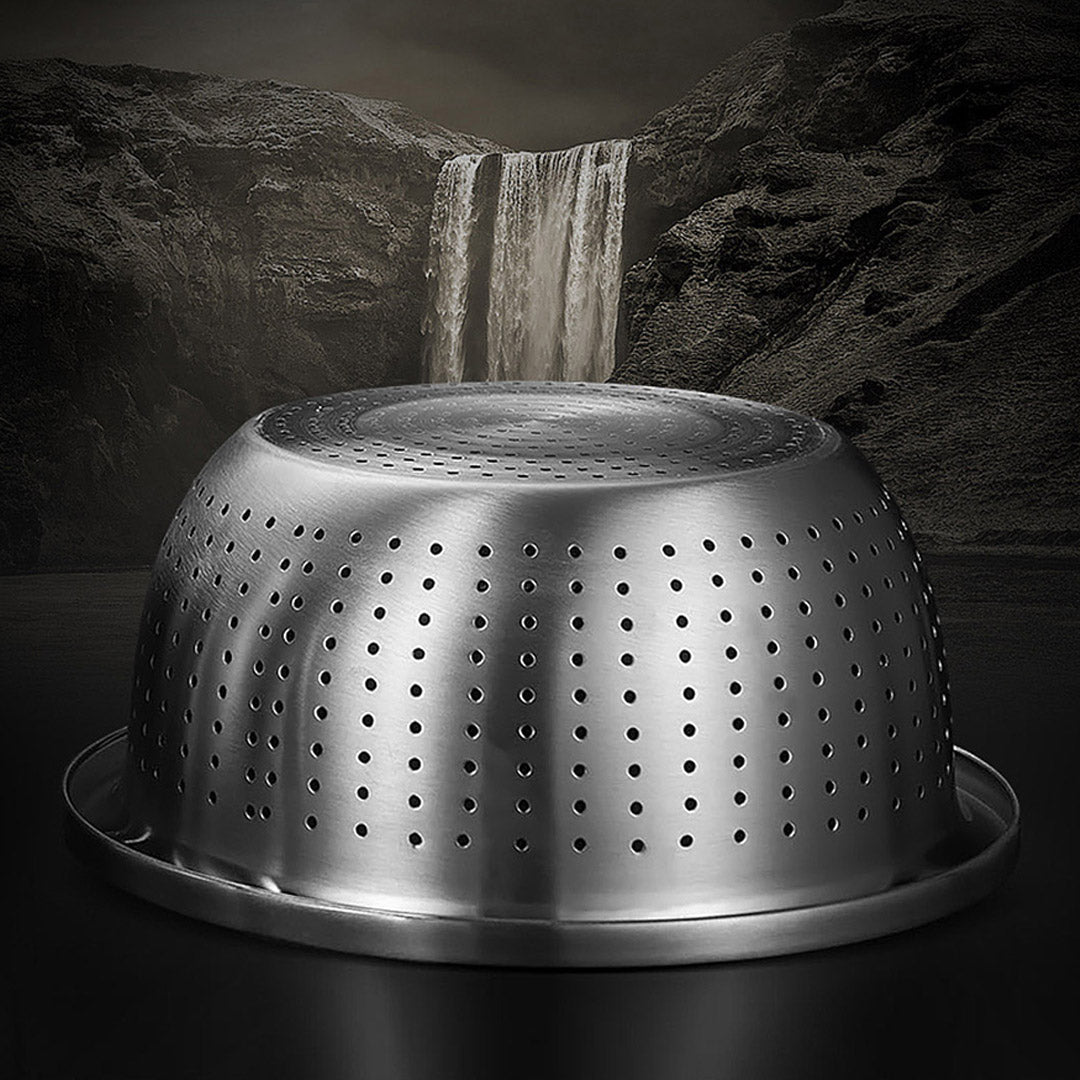 SOGA stainless steel colander is an excellent staple in your kitchen. Whether for draining pasta noodles, washing vegetables, rinsing rice and grains, even just showcasing your citrus or produce on a table as a decorative piece, this colander is indispensable.