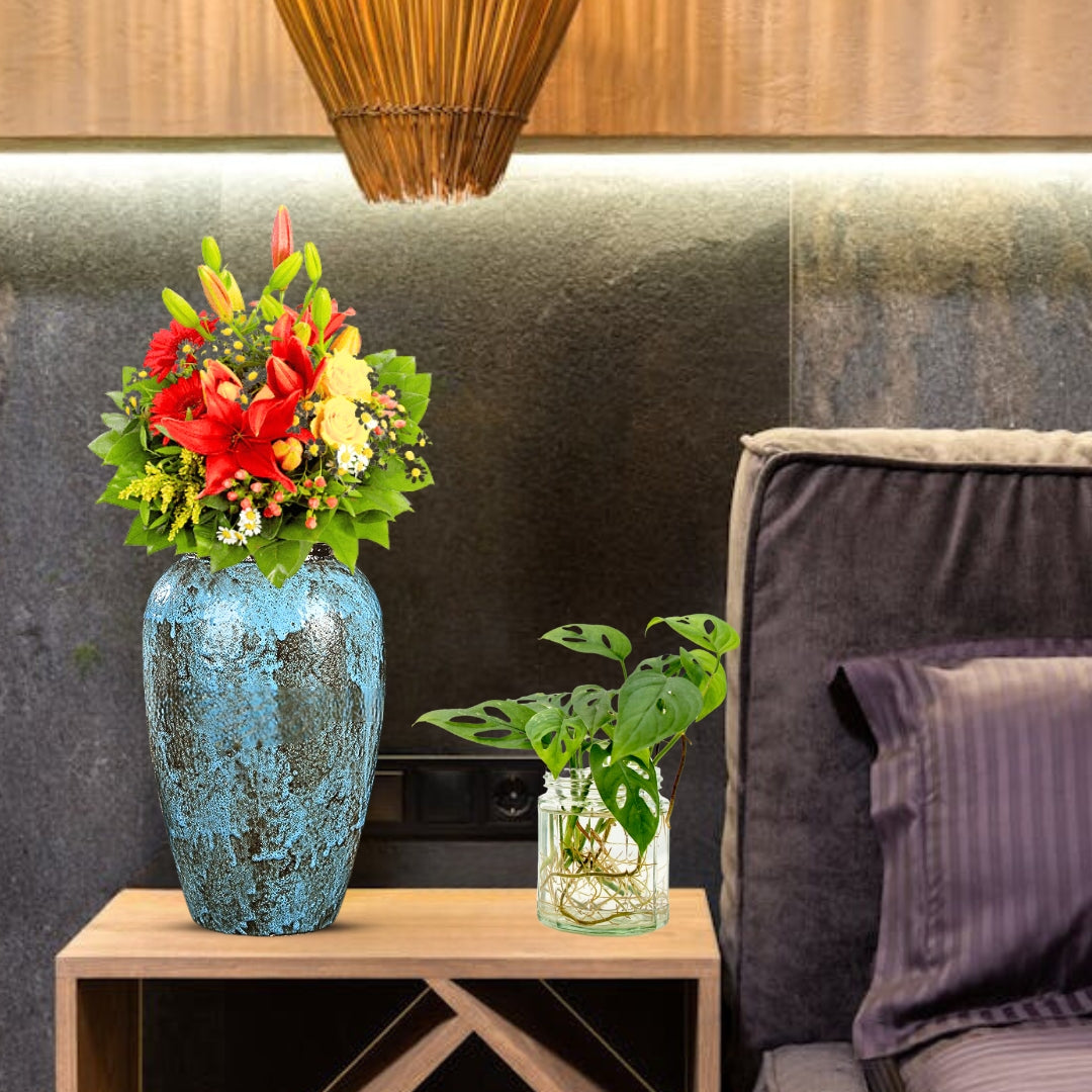 Add a touch of elegance to your home with our Light Blue Ceramic Flower Vase. This medium-sized vase is ideal for showcasing your favorite flowers or serving as a decorative statement piece.