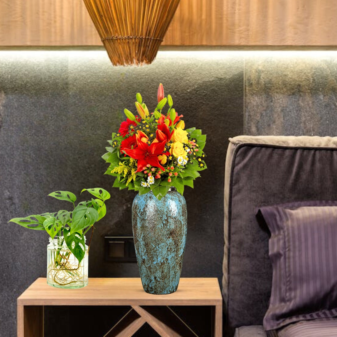 SOGA 35x17cm Light Blue Large Ceramic Flower Vase Elegant Living Room Home Decor