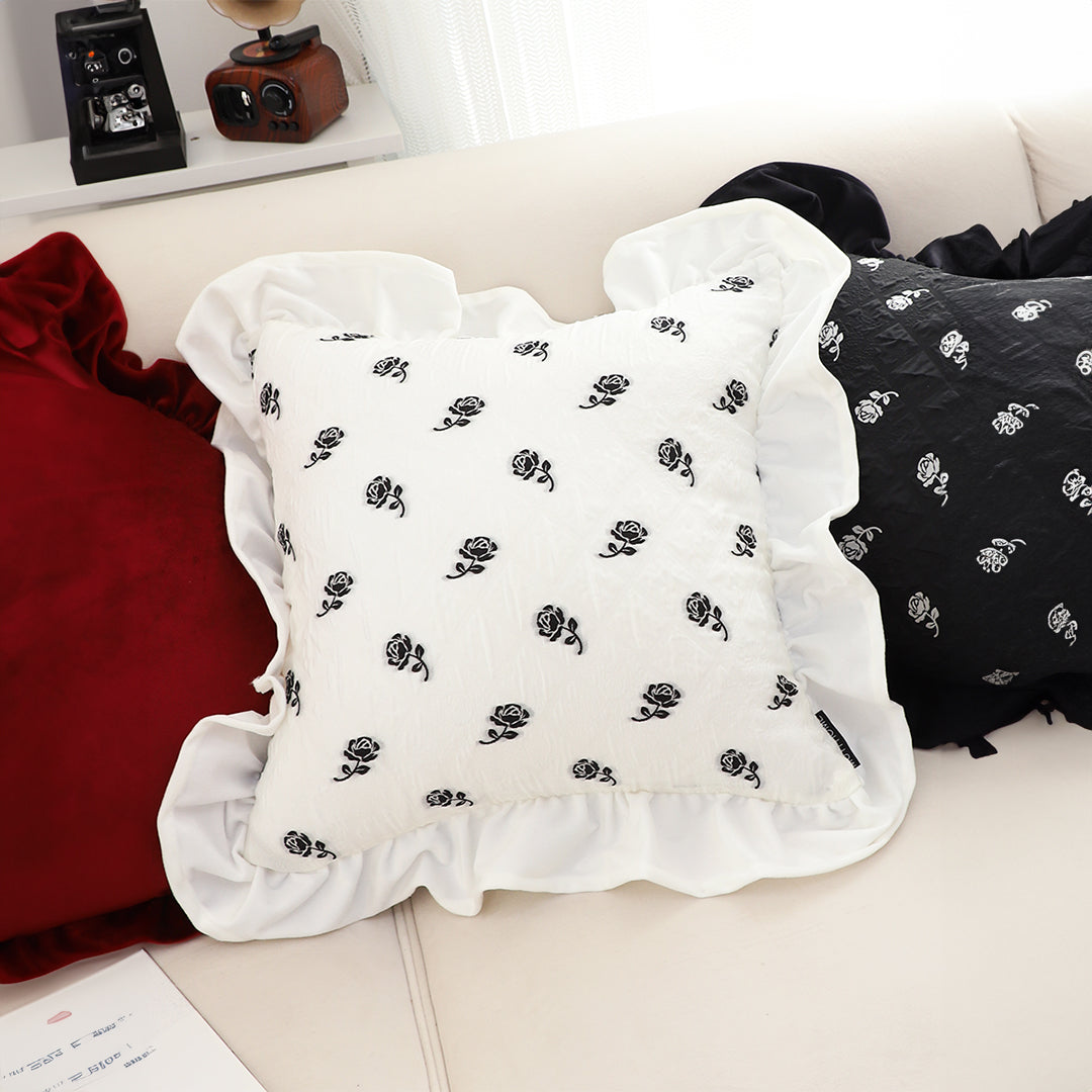 SOGA 45cm Throw Pillow White Ruffled Square Decorative Cushion for Rose Lovers Cozy Home Decor