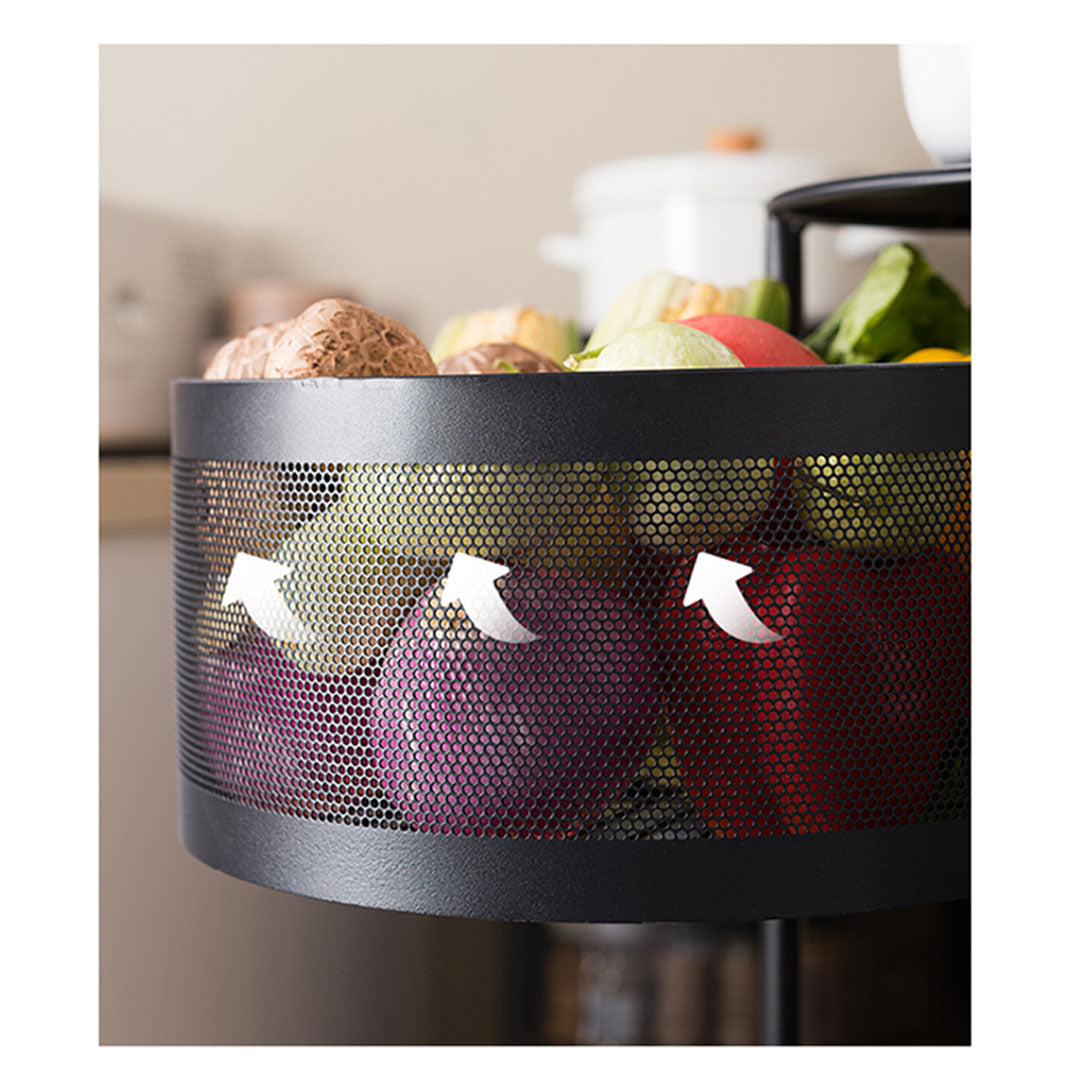 • With ROTATING BASKET DESIGN, that can be rotated left and right, placing and taking items more convenient and direct. The basket breathable pattern design ensures ventilation (keeps fruits and vegetables fresh), while you can place a thing on top of the shelf.
