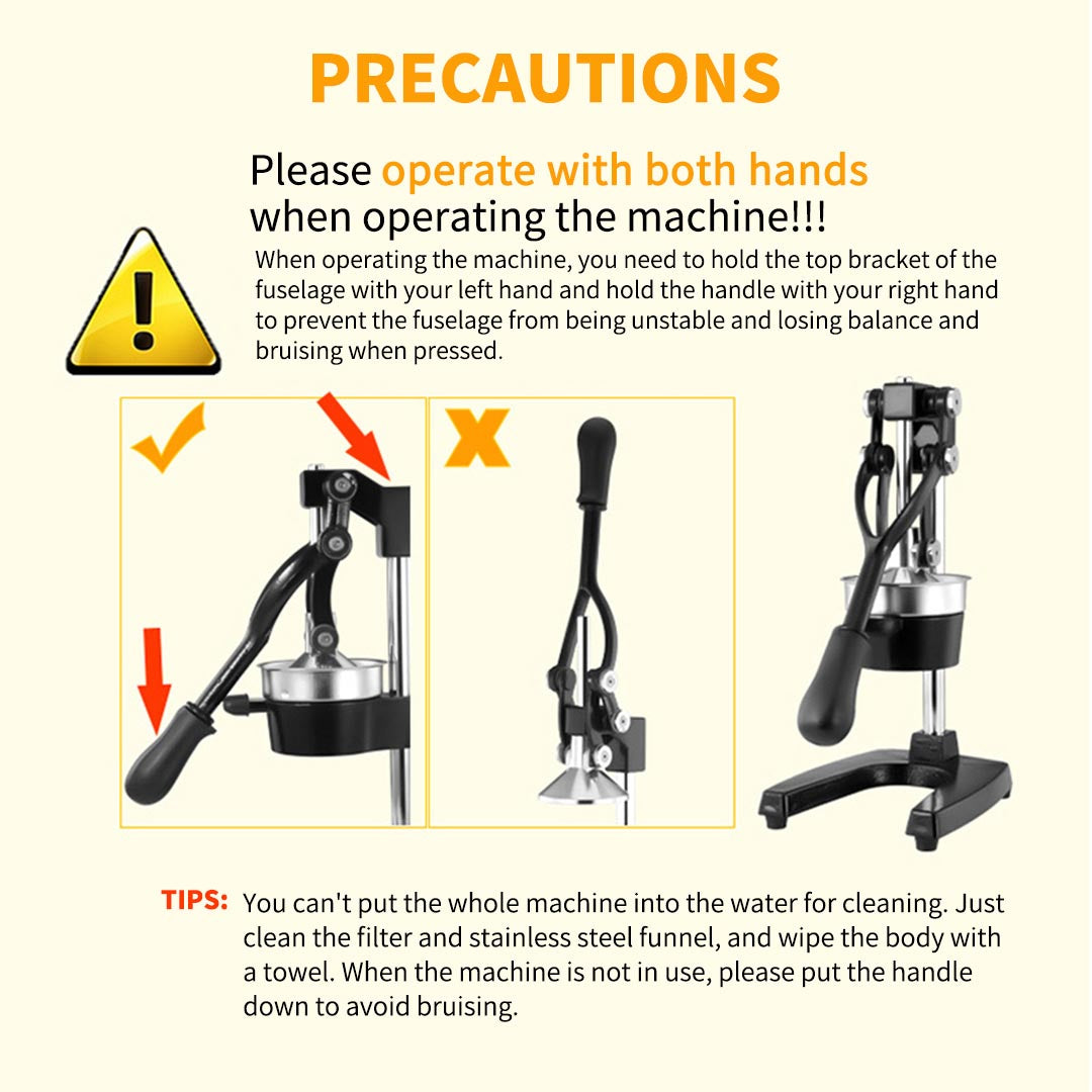 The main body is made of a sturdy cast iron construction base with a food-grade 304 stainless steel strainer and a large opening for juice collecting.