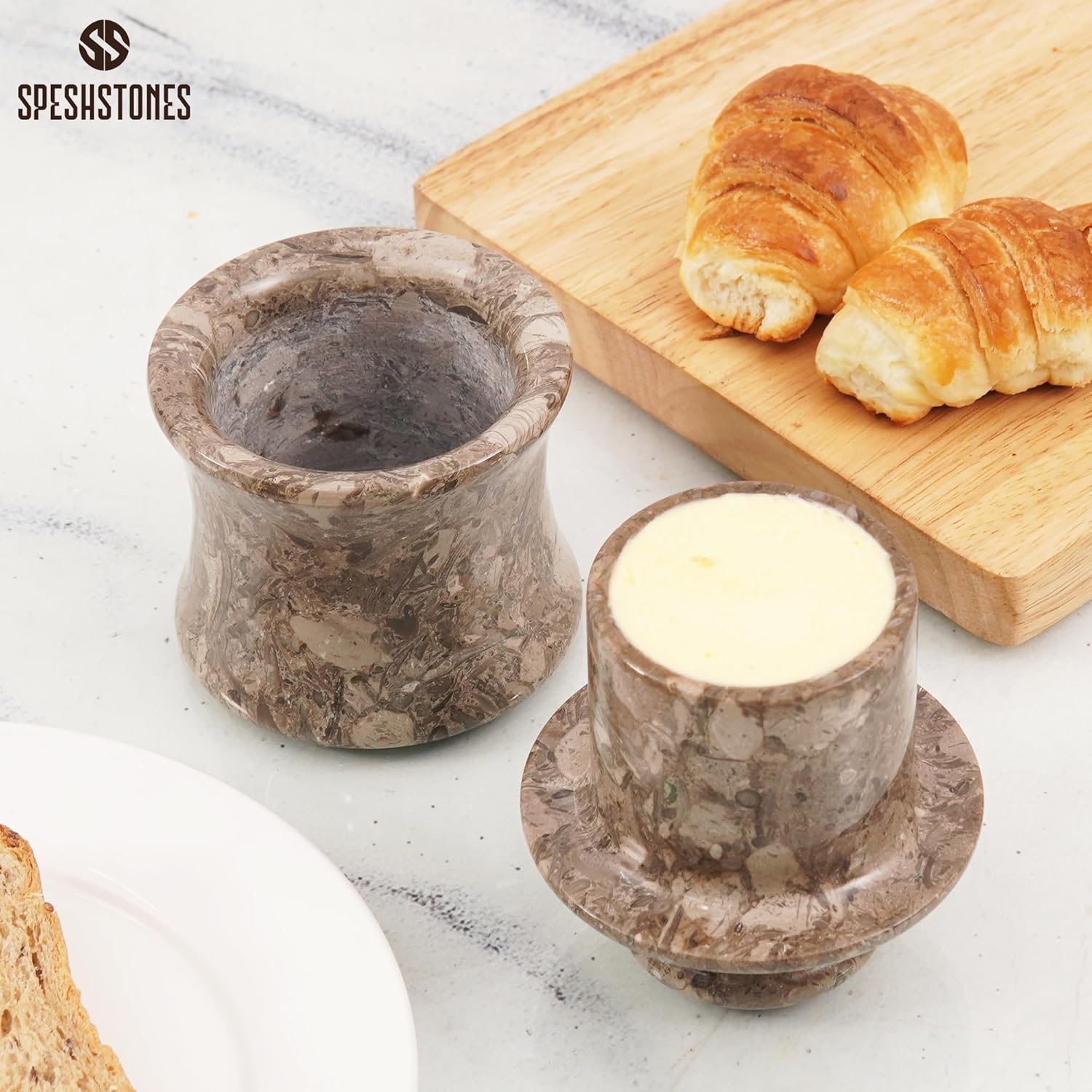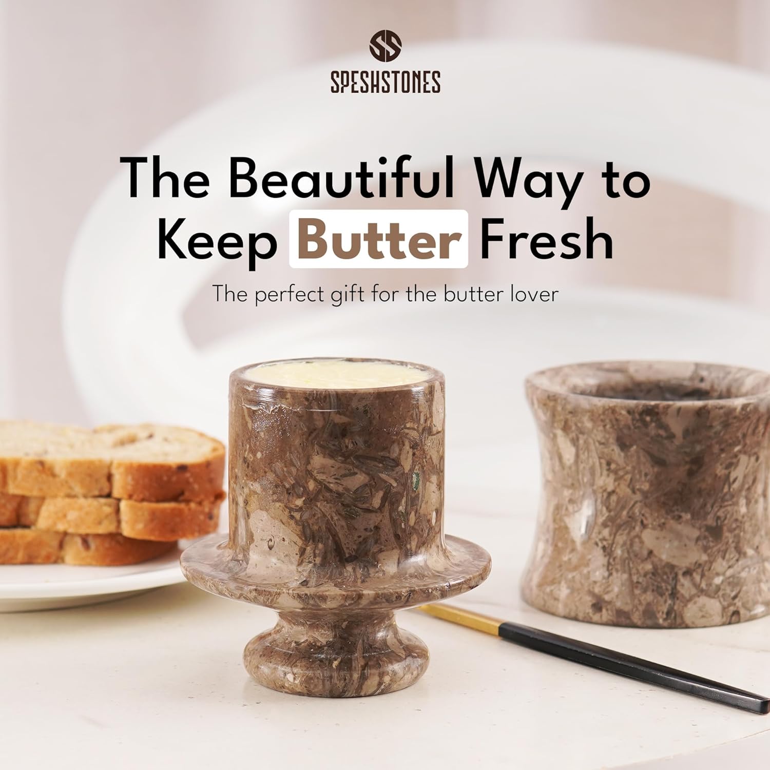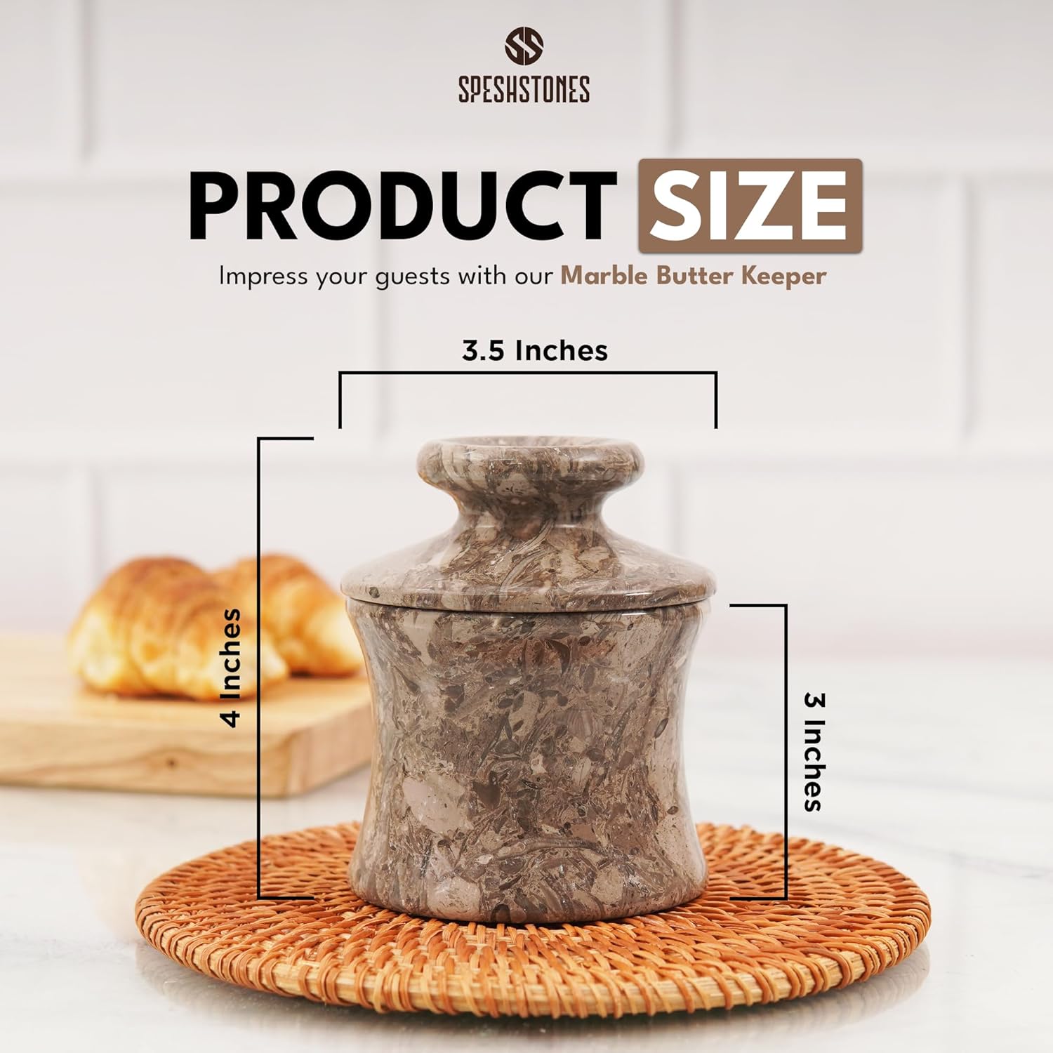 SPESHSTONES Marble Butter Keeper with Lid for Countertop 4 Inch Oceanic French Butter Crock with Water for Kitchen Storage Holder, Stone Butter Dish for Soft Spreadable Butter