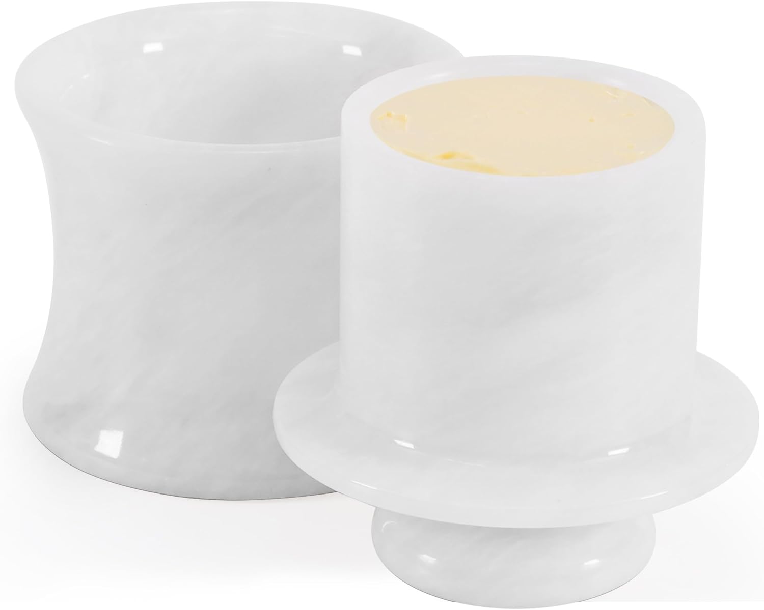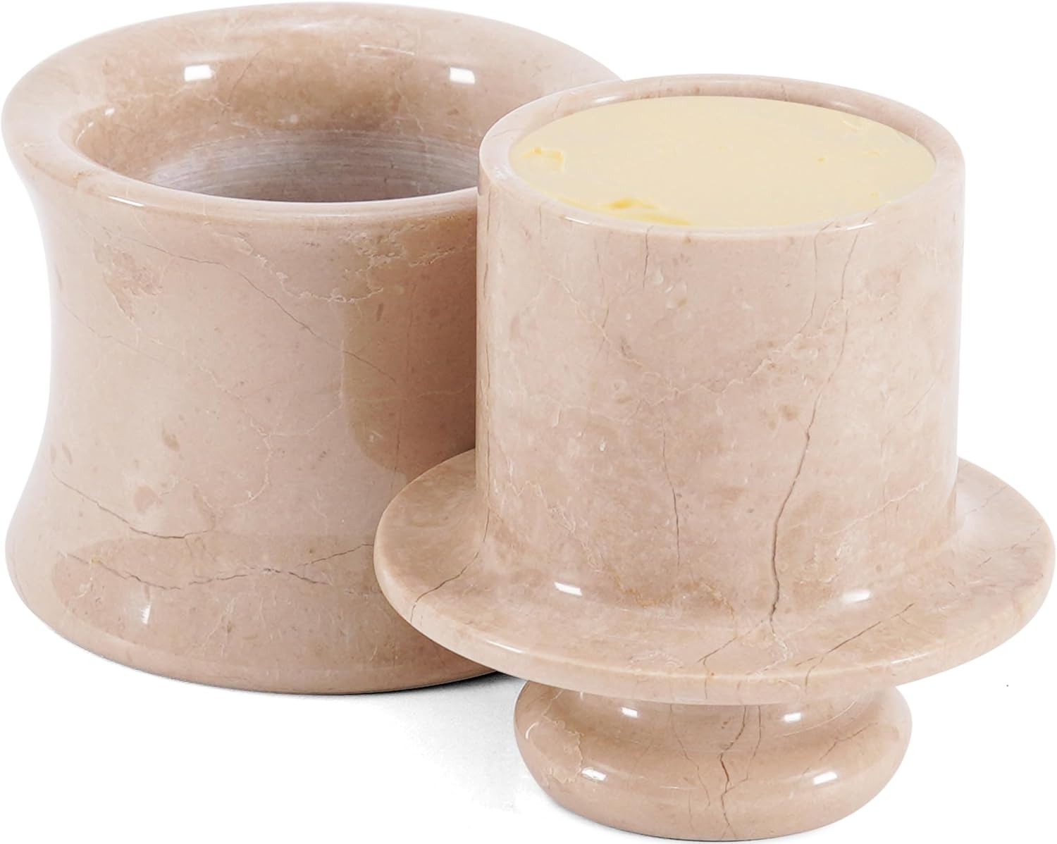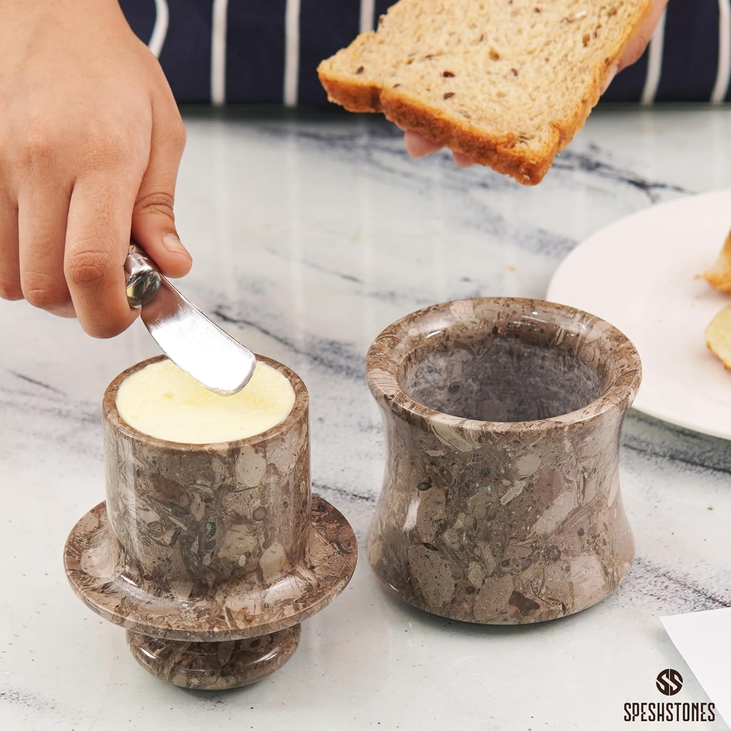 SPESHSTONES Marble Butter Keeper with Lid for Countertop 4 Inch Oceanic French Butter Crock with Water for Kitchen Storage Holder, Stone Butter Dish for Soft Spreadable Butter