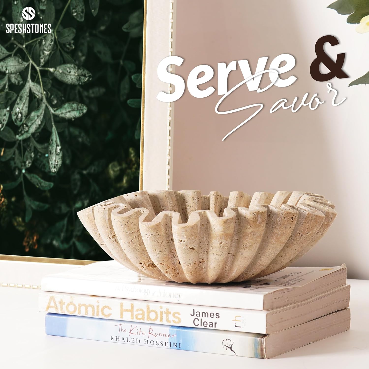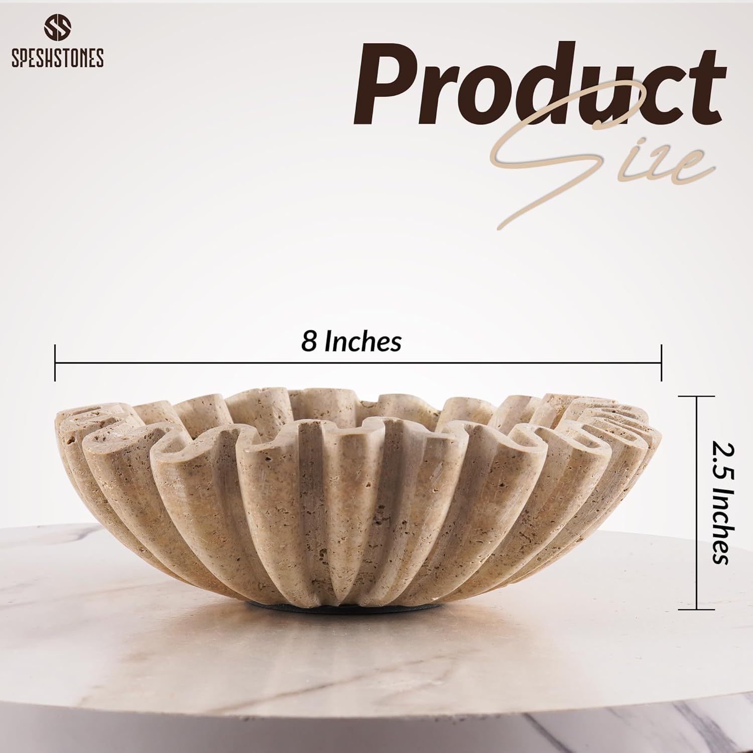 SPESHSTONES Marble Ruffle Bowl 8 Inch Handmade Travertine Fruit Bowl for Kitchen Counter - Large Decorative Scalloped Bowls for Dining, Coffee Table Centerpieces & Home Decor