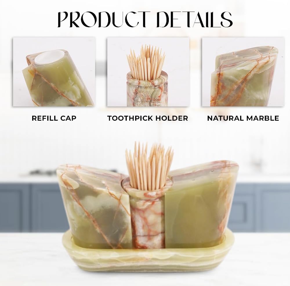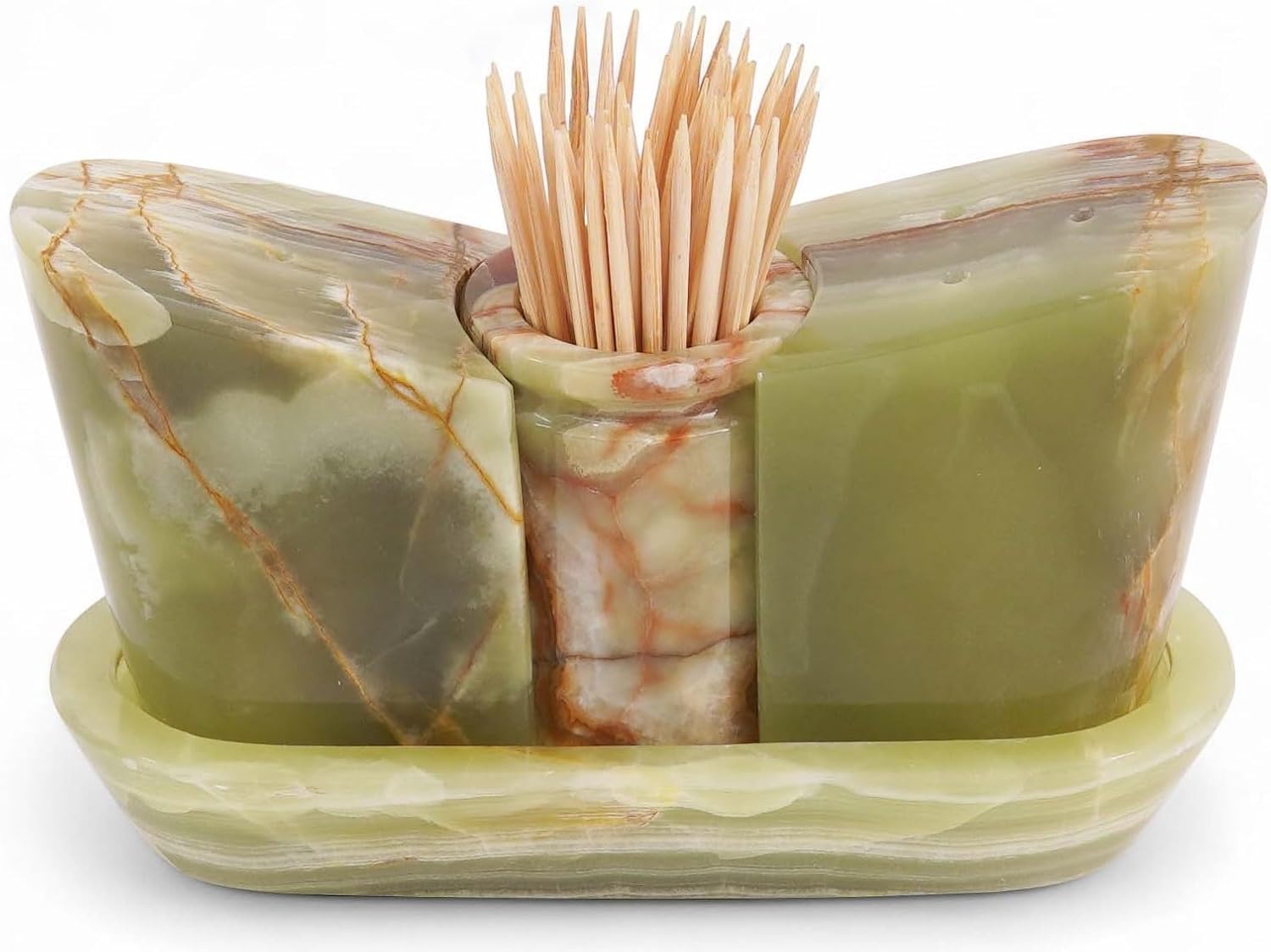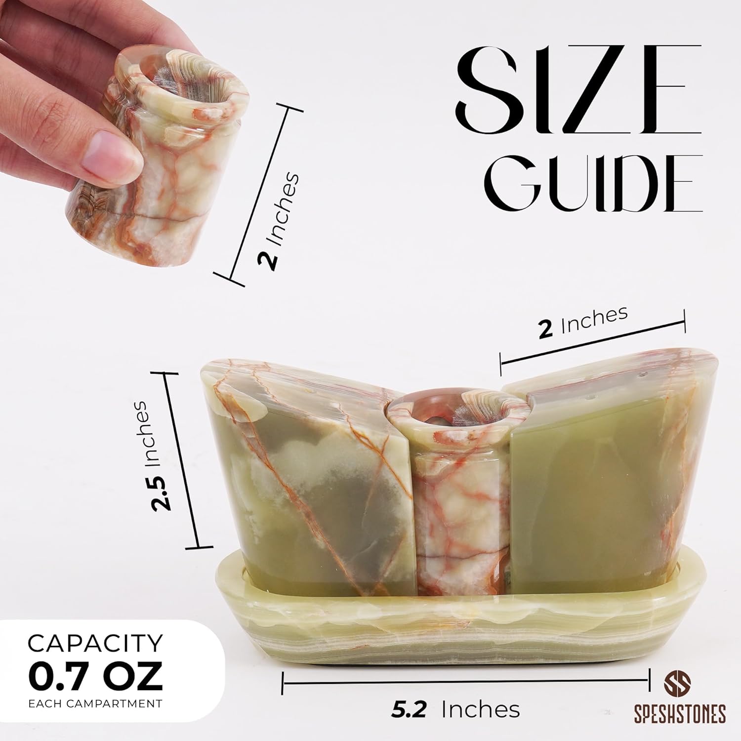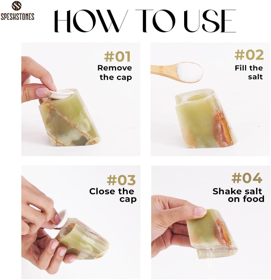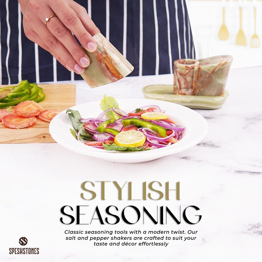 SPESHSTONES Marble Salt and Pepper Shakers Set With Tray 2.5 Inch Green Stone Flaky Salt Cellar for Kitchen Table Decor Modern Spice Jars, Sugar Bowl and Seasoning Storage Containers