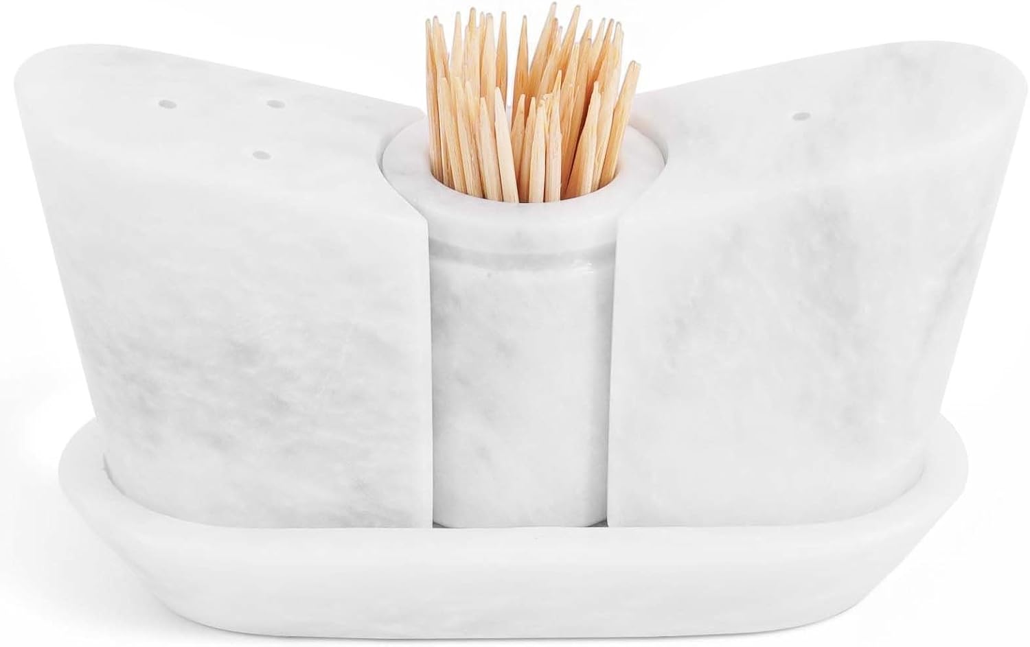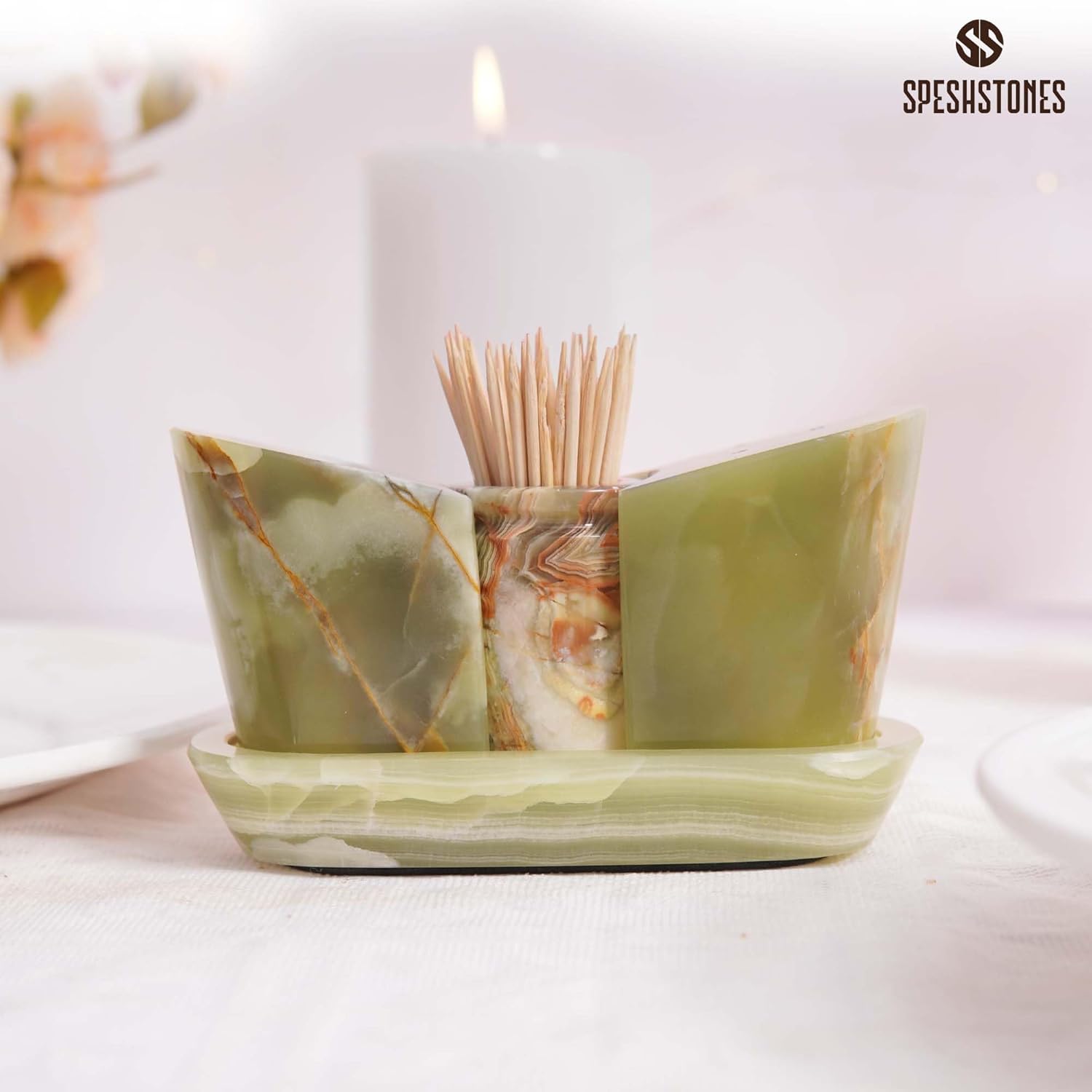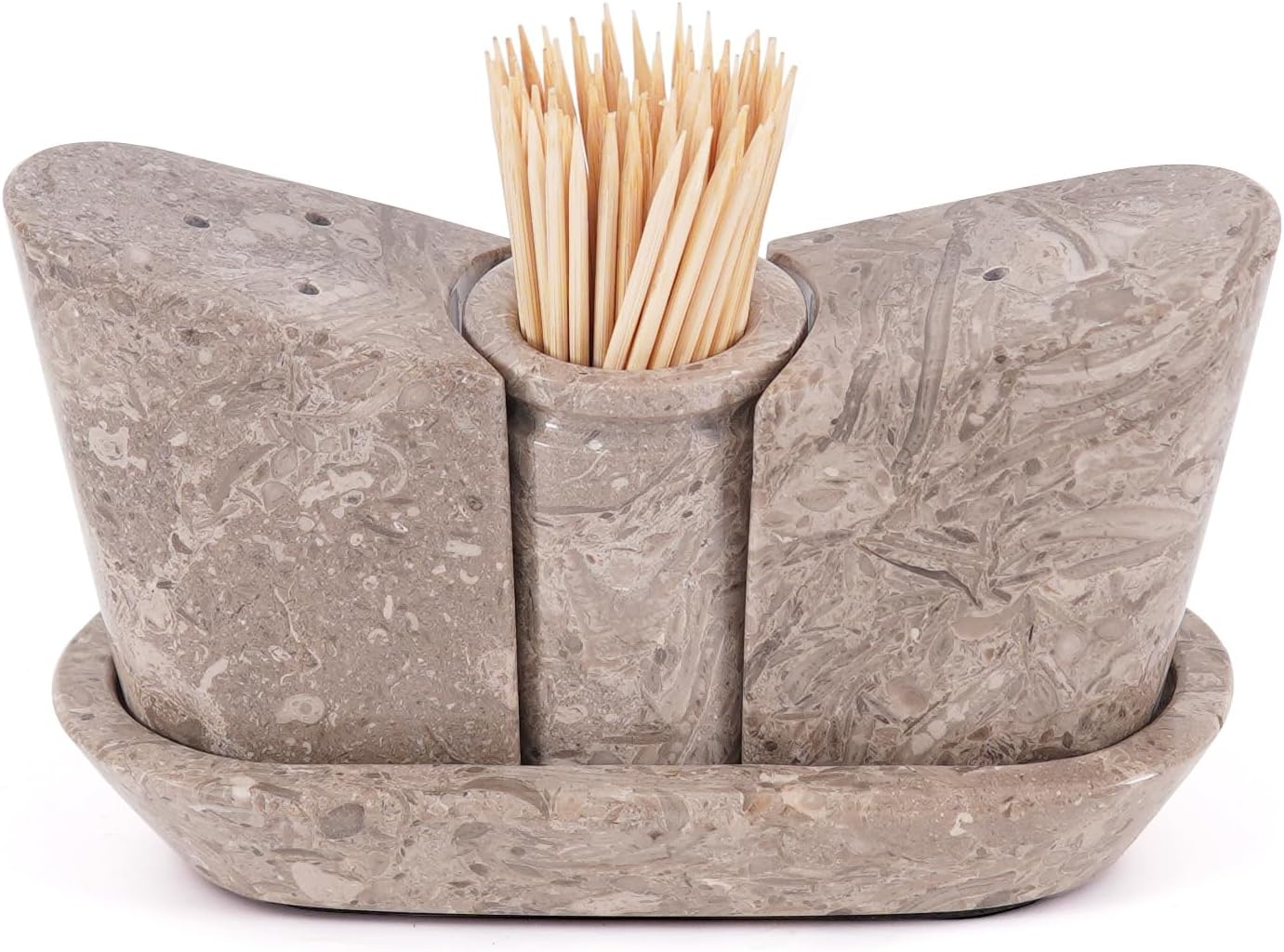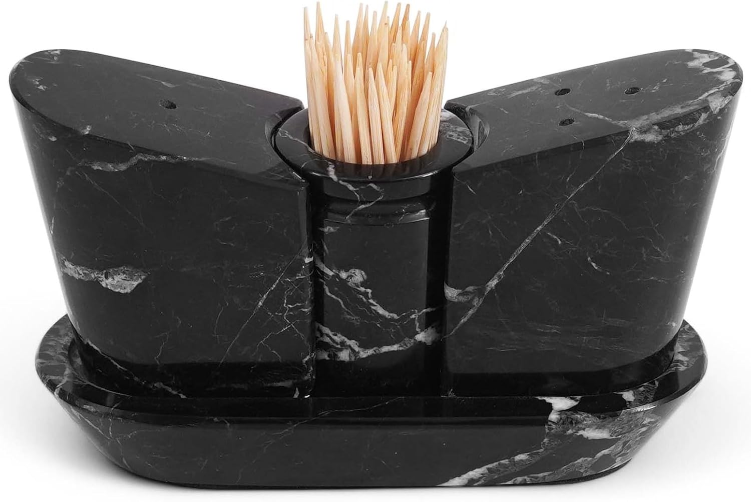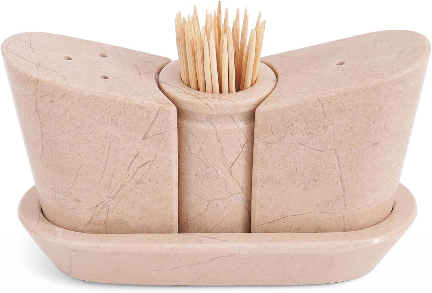 SPESHSTONES Marble Salt and Pepper Shakers Set With Tray 2.5 Inch Green Stone Flaky Salt Cellar for Kitchen Table Decor Modern Spice Jars, Sugar Bowl and Seasoning Storage Containers
