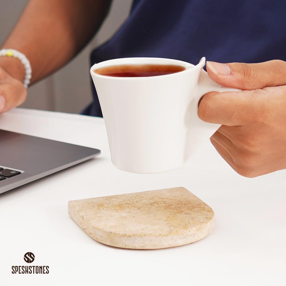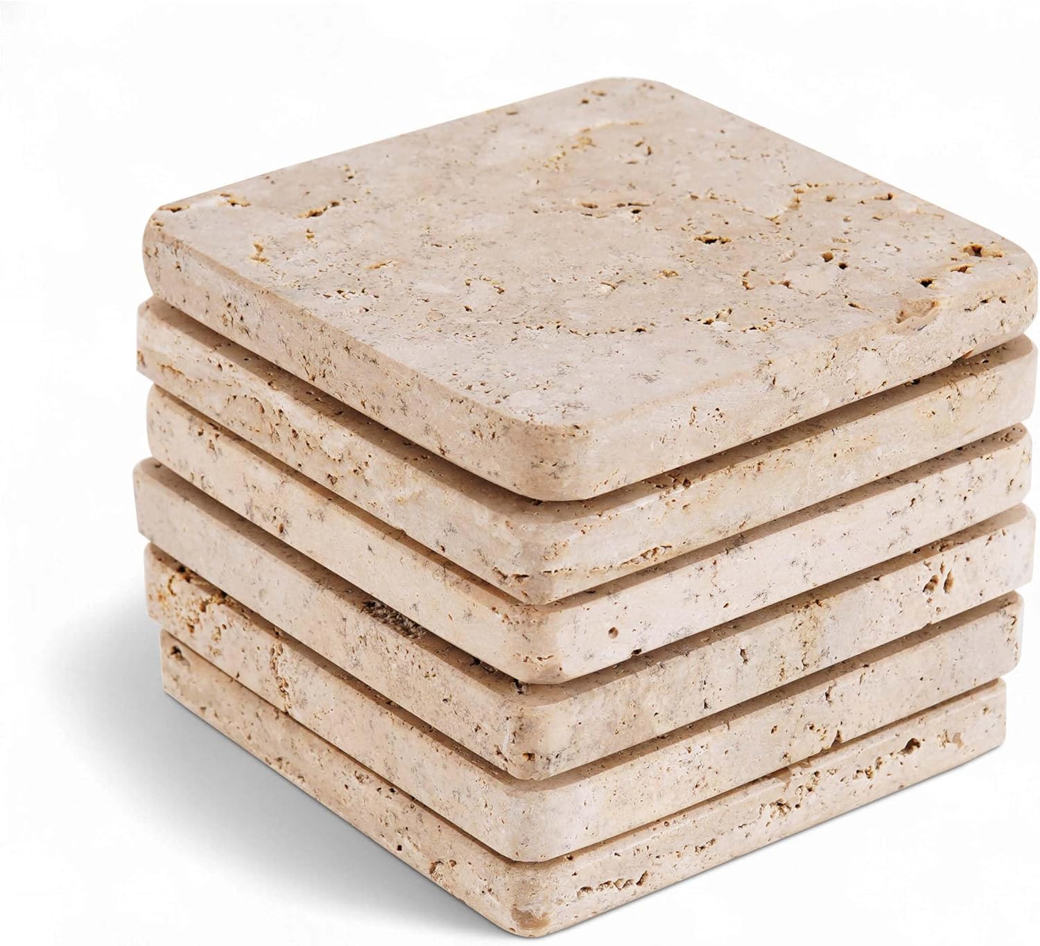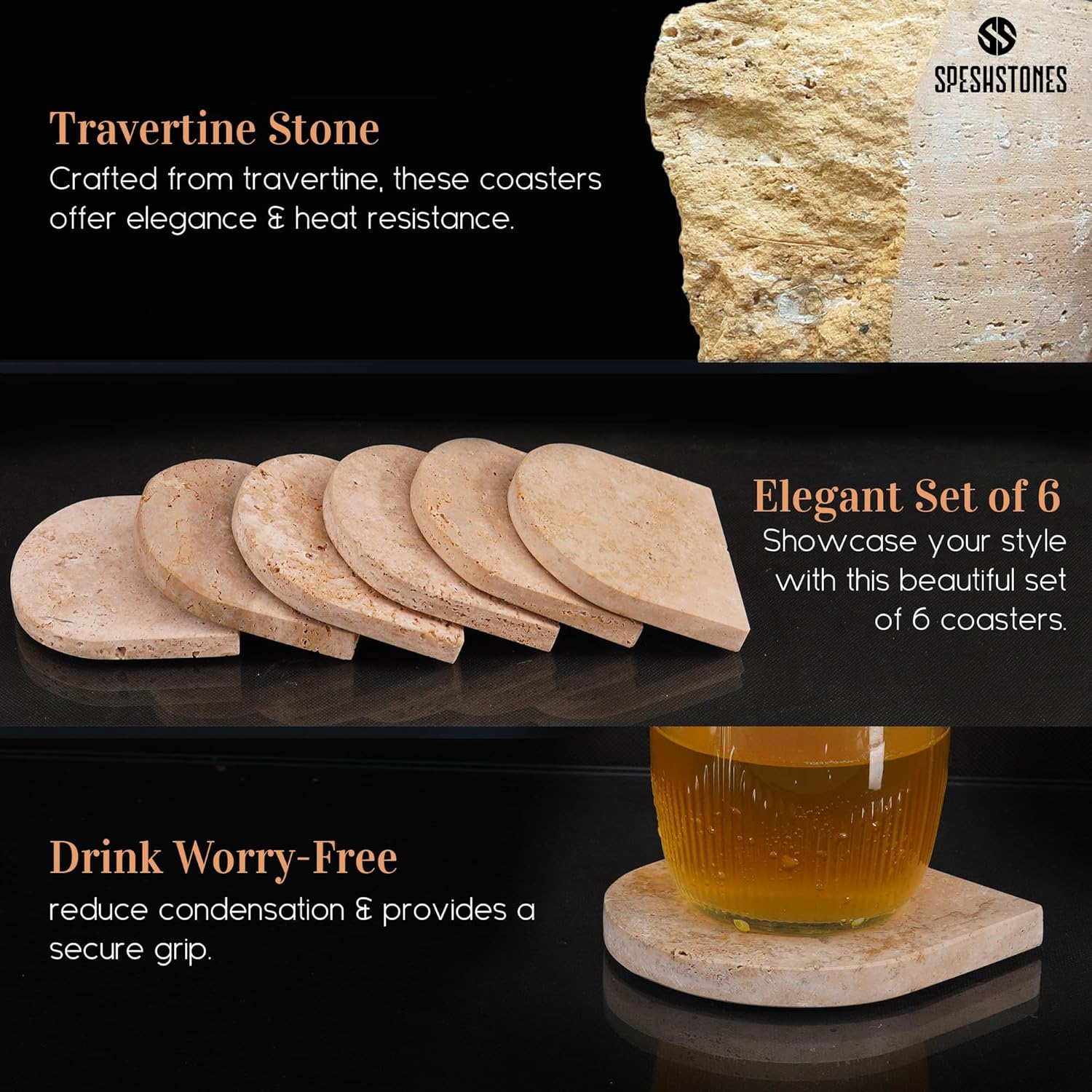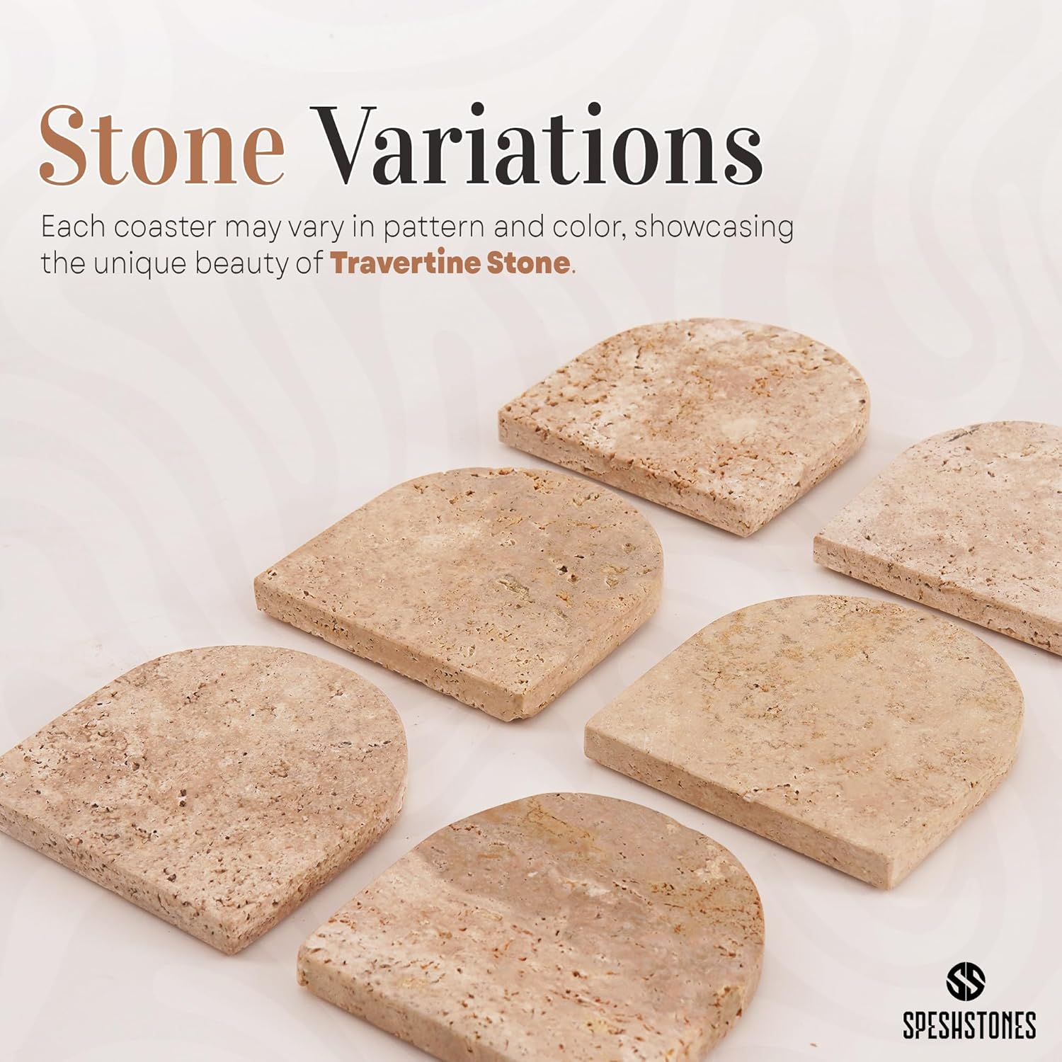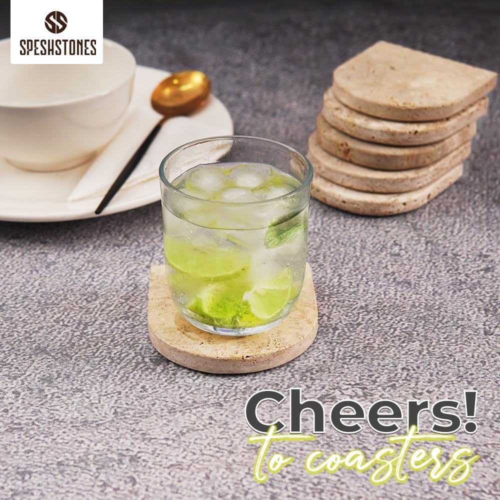 SPESHSTONES Travertine Coasters Set of 6 for Drinks 3.75 Inch Handmade Marble Stone Drink Coaster for Coffee Table, Dining & Kitchen Decor, Home & Office Essentials