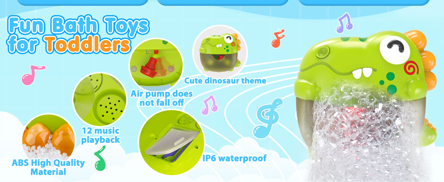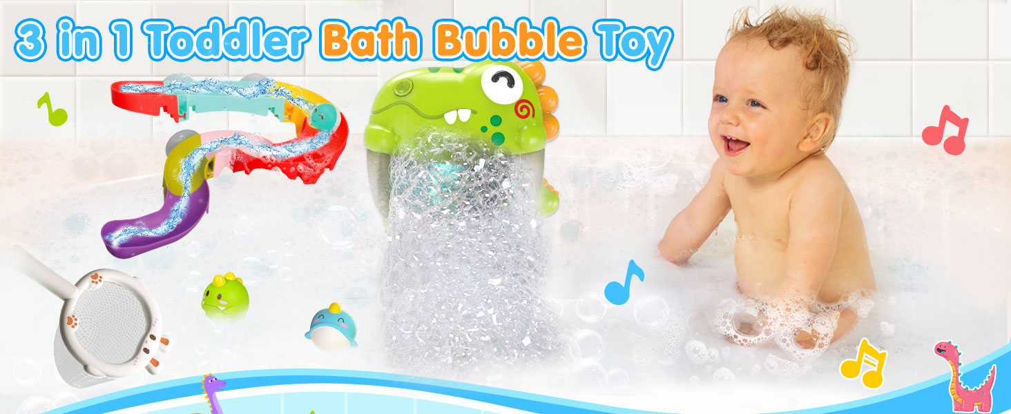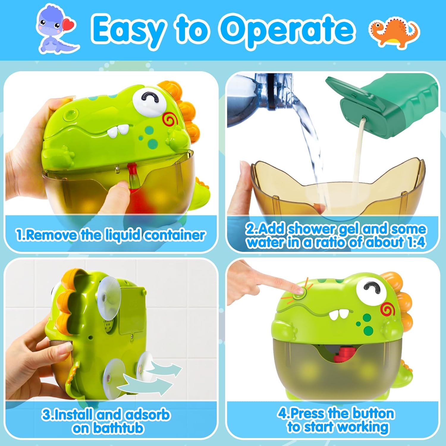 Toddler Bubble Bath Toys, Light Up Bath Bubble Machine Toy for Kids Age 1-3 3-5 Bathtub Tub Toy Slide Track Dinosaur Bubbles Maker with Music Floating Animal Water Toys 2 3 4 5 Year Old Boy Girl Gift