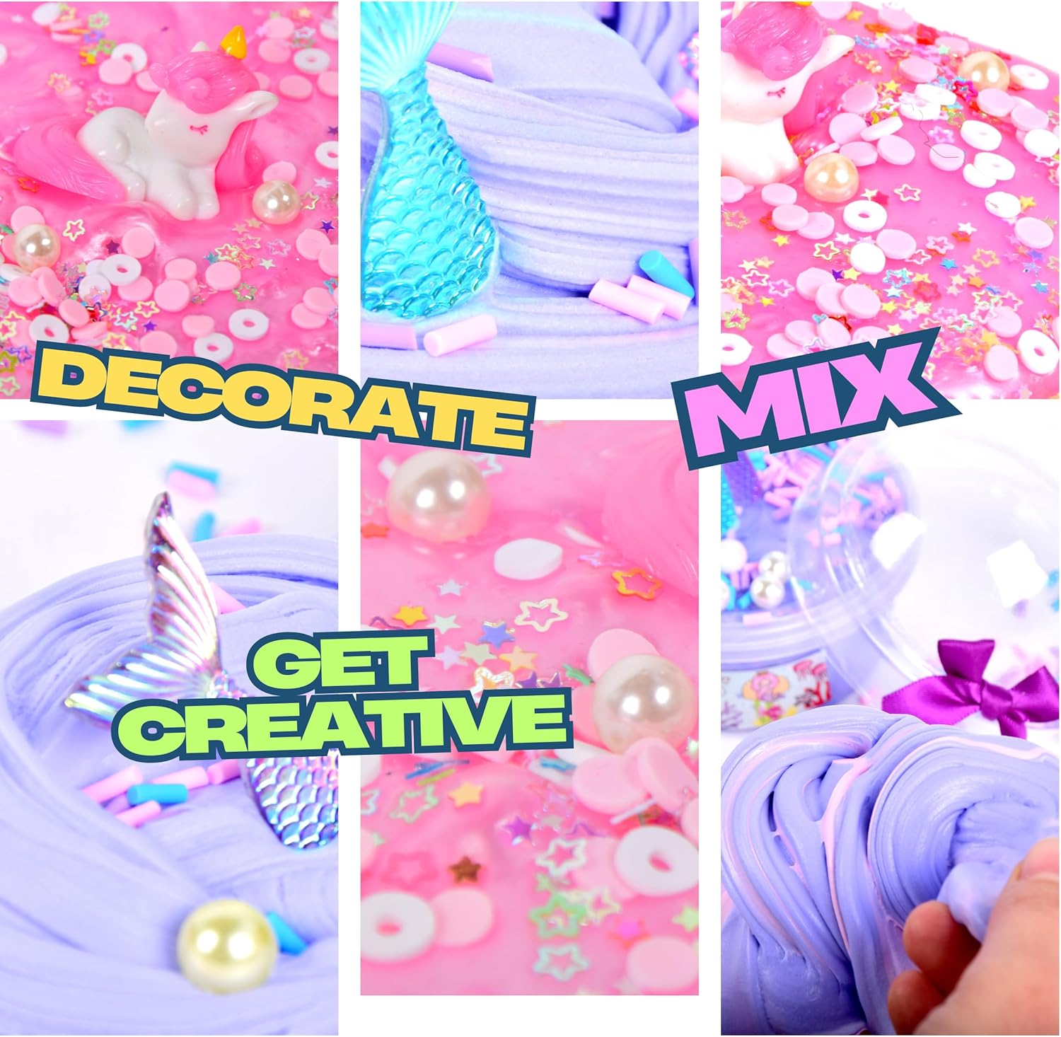ToysButty Butter Slime kit, MicroWorld 2 Pack Clear & Fluffy Slime for Kids, Unicorn Mermaid Theme Party Favors with 6 Slime add ins, Unicorn Kids Toy Birthday Gifts for Girls Age 8-12