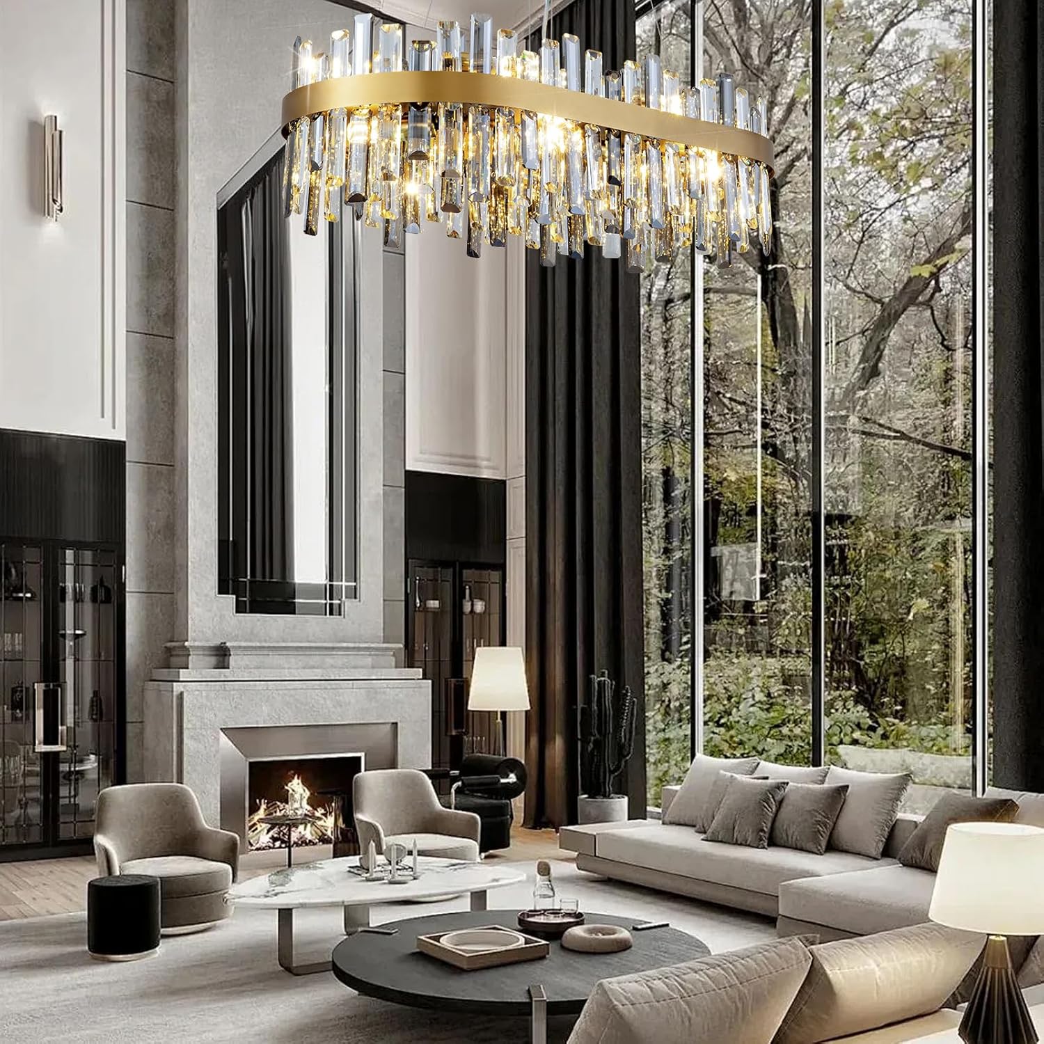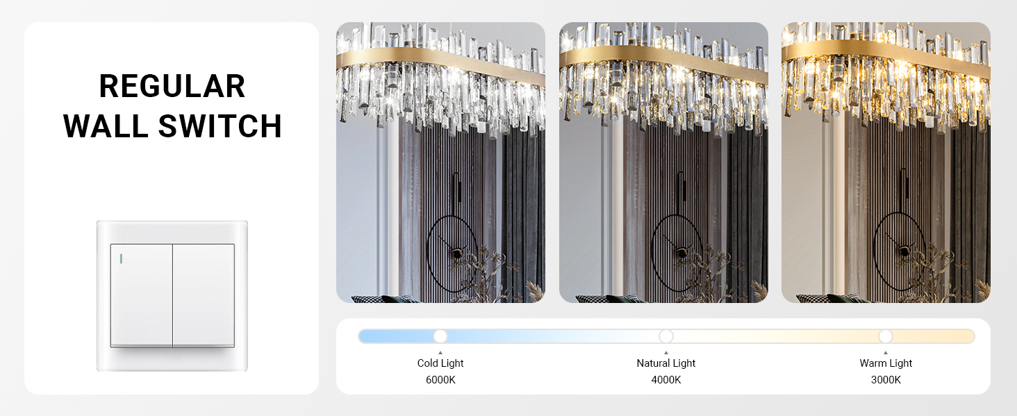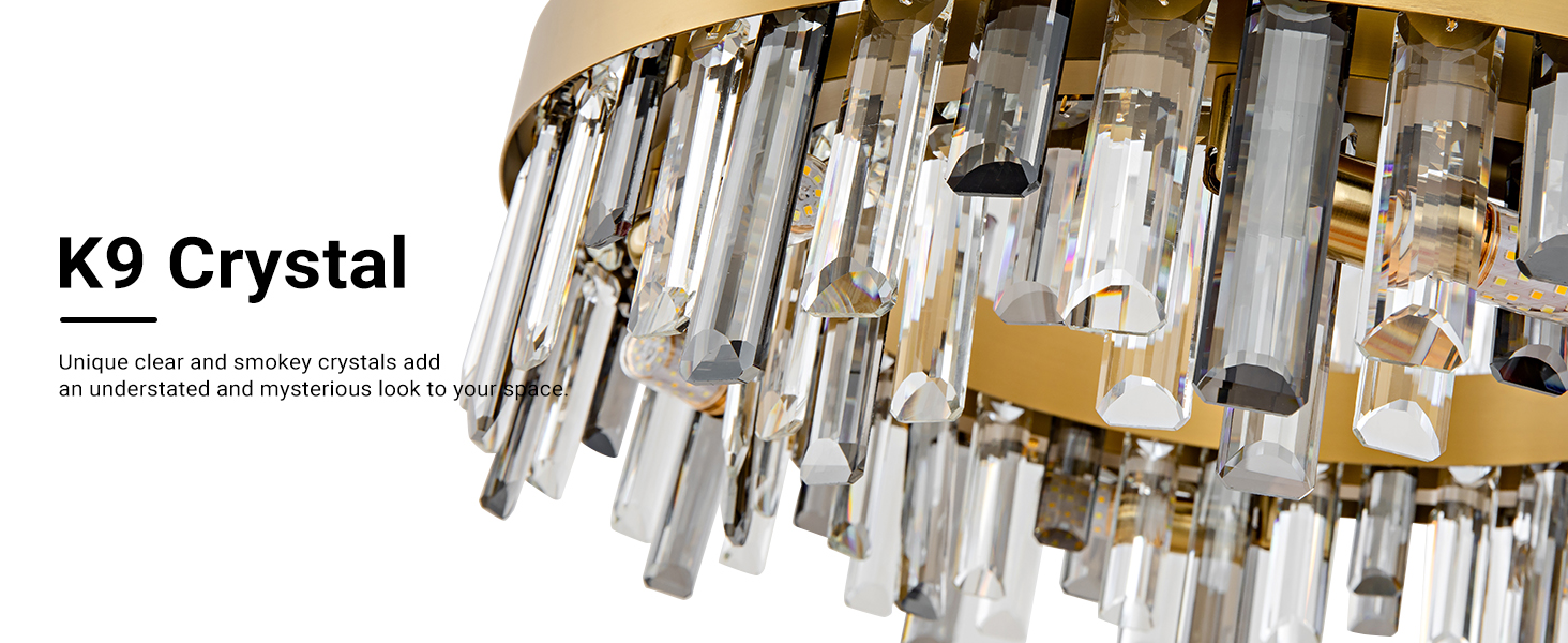 💧【Unique Irregular Raindrop Crystal】The chandelier's irregularly arranged crystals soften the light, reducing glare while brightening the room. Available in clear and smoky gray, the crystals offer distinct visual experiences—clear for a luxurious, grand look and smoky gray for an understated, mysterious ambiance.