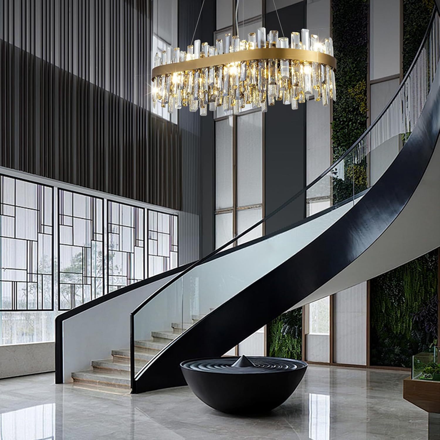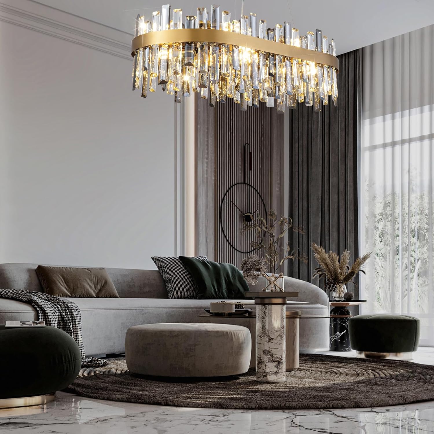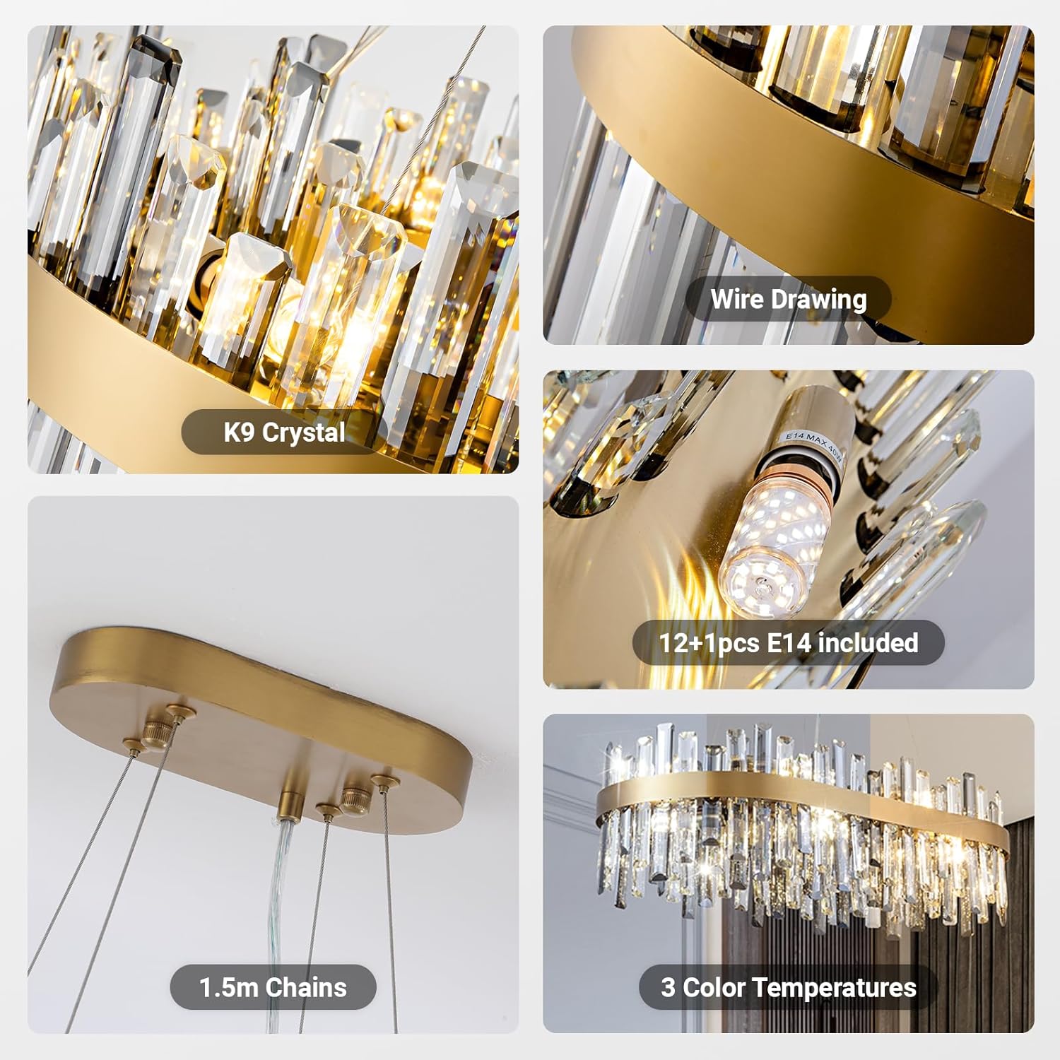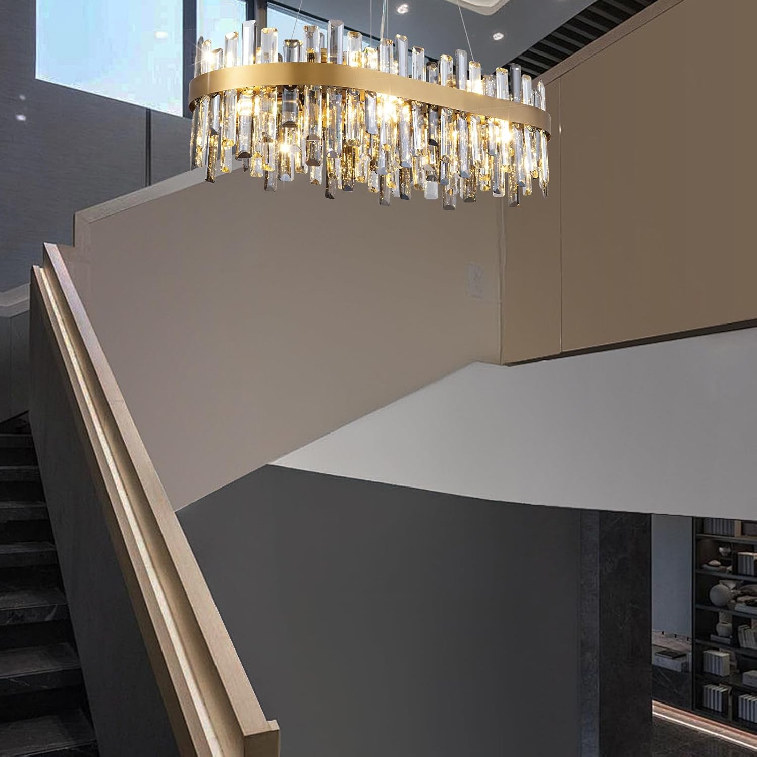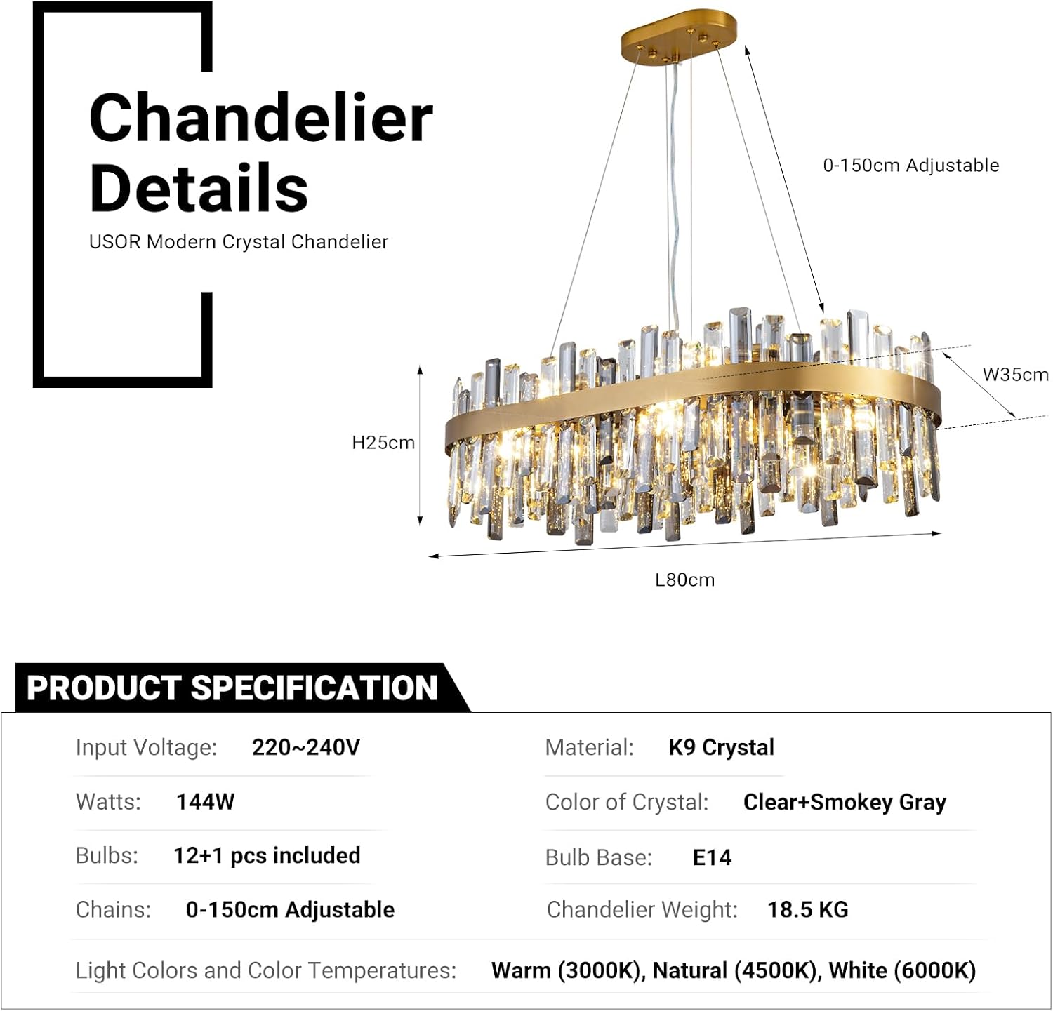 📏【Size & Adjustable Height】This modern gold chandelier features L80cm and W35cm, and comes with a 150cm adjustable pendant chain, ensuring it fits perfectly in rooms with both low and high ceilings. The chandelier weighs approximately 16.5 KG, making it a substantial and striking addition to your space.